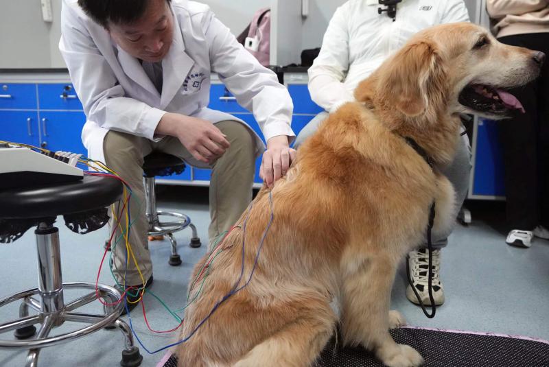 體檢現(xiàn)場(chǎng),導(dǎo)盲犬“沙果”的主人張女士告訴北京青年報(bào)記者,“沙果”由于年齡原因以及工作性質(zhì),感覺雙后肢活動(dòng)不協(xié)調(diào),希望這次好好檢查一下,看如何治療。動(dòng)物醫(yī)院診療團(tuán)隊(duì)負(fù)責(zé)人陳武教授、姜代勛副教授、段慧琴副教授、張華副教授為“沙果”進(jìn)行了全面的檢查并會(huì)診,安排了針灸治療,也為張女士詳細(xì)介紹了治療方案和飼養(yǎng)注意事項(xiàng)。
