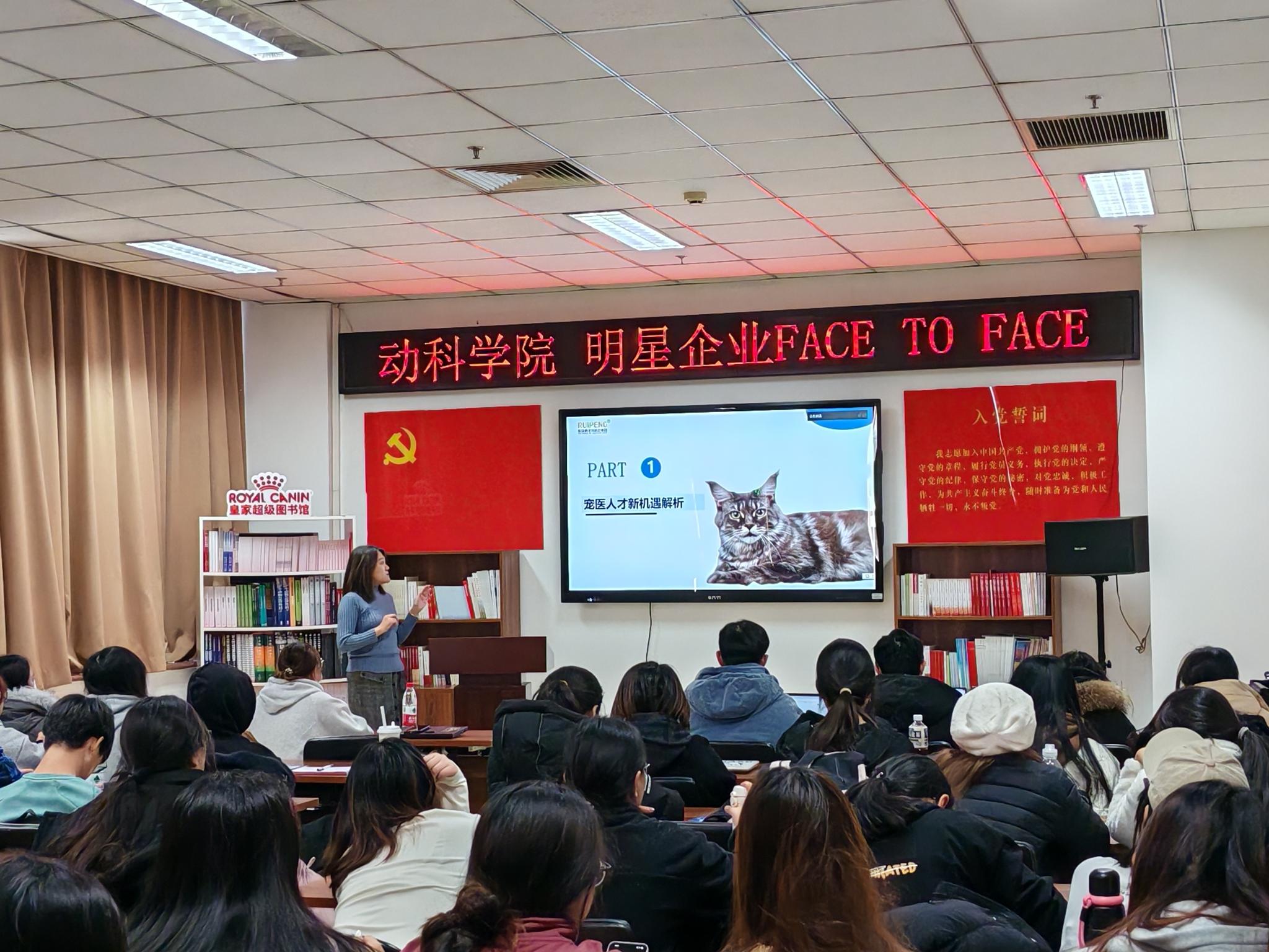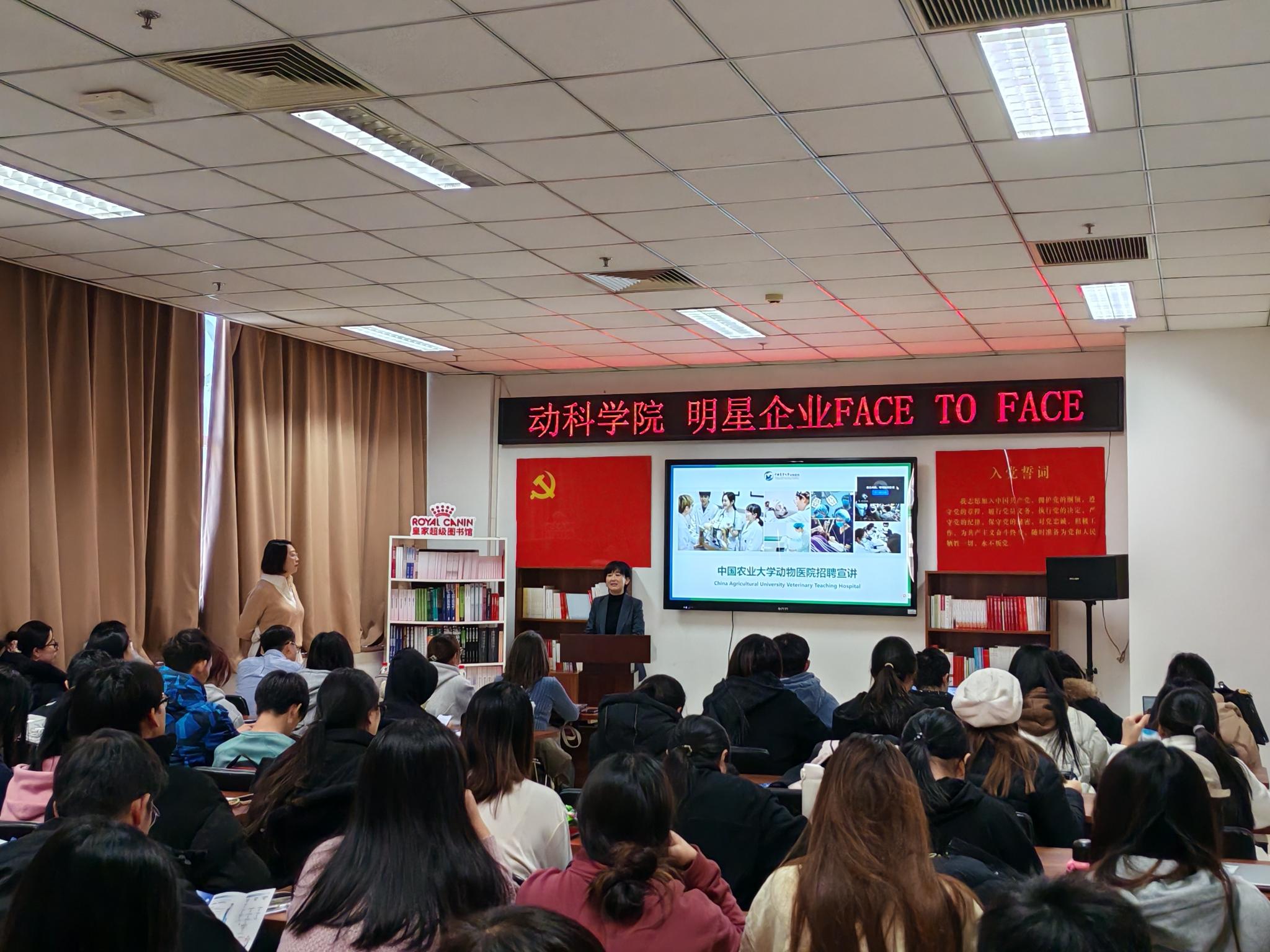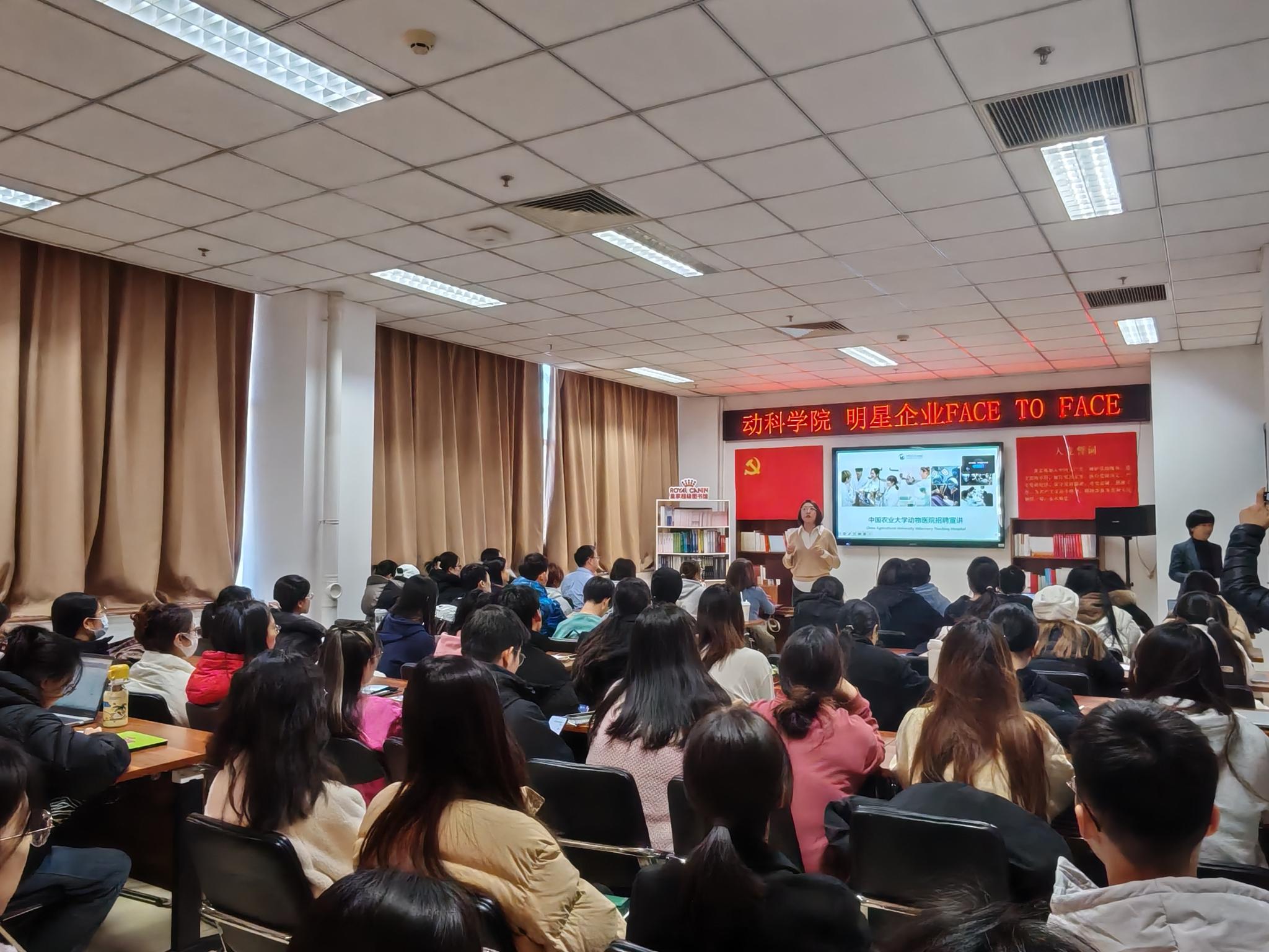 1月3日,動物科學技術學院舉辦2025年首場明星企業面對面活動,邀請中國農業大學動物醫院、新瑞鵬寵物醫療集團、北京卡尤迪生物科技股份有限公司三家企業負責人與學生面對面交流,結合當前就業形勢,勉勵同學們樹立正確的就業觀和擇業觀,做好職業規劃。