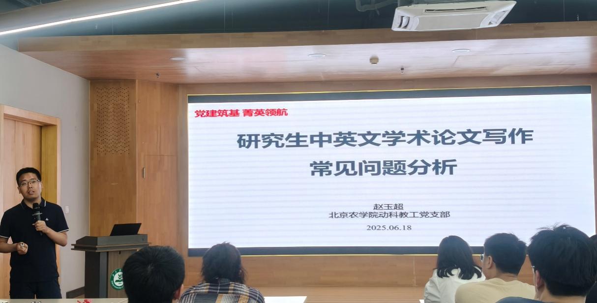 為深化黨建引領育人實效,切實提升研究生學術寫作能力,近日,動物科學技術學院教工黨支部舉辦了第一期“黨建筑基 菁英領航”專題活動。活動聚焦研究生學術發展需求,邀請了趙玉超副教授作題為“研究生中英文學術論文寫作常見問題分析”的專題報告。