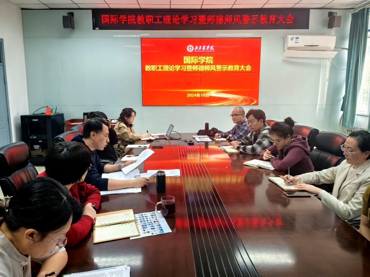 近日,國際學院黨總支召開全體教職工大會,深入學習黨的二十屆三中全會精神和習近平總書記關于教育的重要論述,重點開展教師思想政治教育和師德師風專項學習。會議由黨總支書記楊寶東主持。