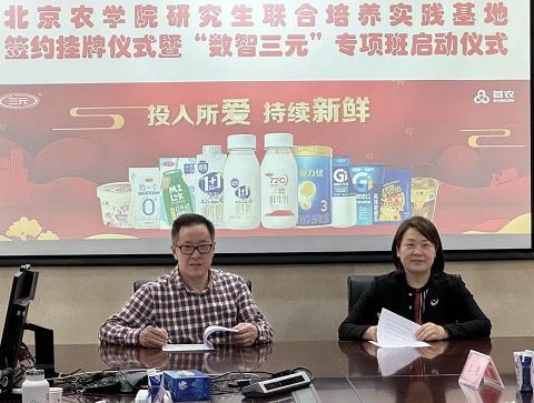 鄭品石代表學校對三元食品長期以來予以學校的支持和幫助表示衷心感謝。他指出,三元食品是首都乳制品穩產保供的大型農業龍頭企業。北京農學院作為市屬都市農林特色高水平應用型大學,擔負著服務國家鄉村振興、農業強國和北京農業農村現代化建設的使命。“數智三元”研究生專項班計劃,既是北京農學院培養高水平應用型人才的創舉,也是企業人才需求向高校前置化培養模式的探索。今后,學校將和三元食品深入探索更為有效的合作機制、多層面的產學研交流合作模式,全面提升專業研究生的人才培養質量。