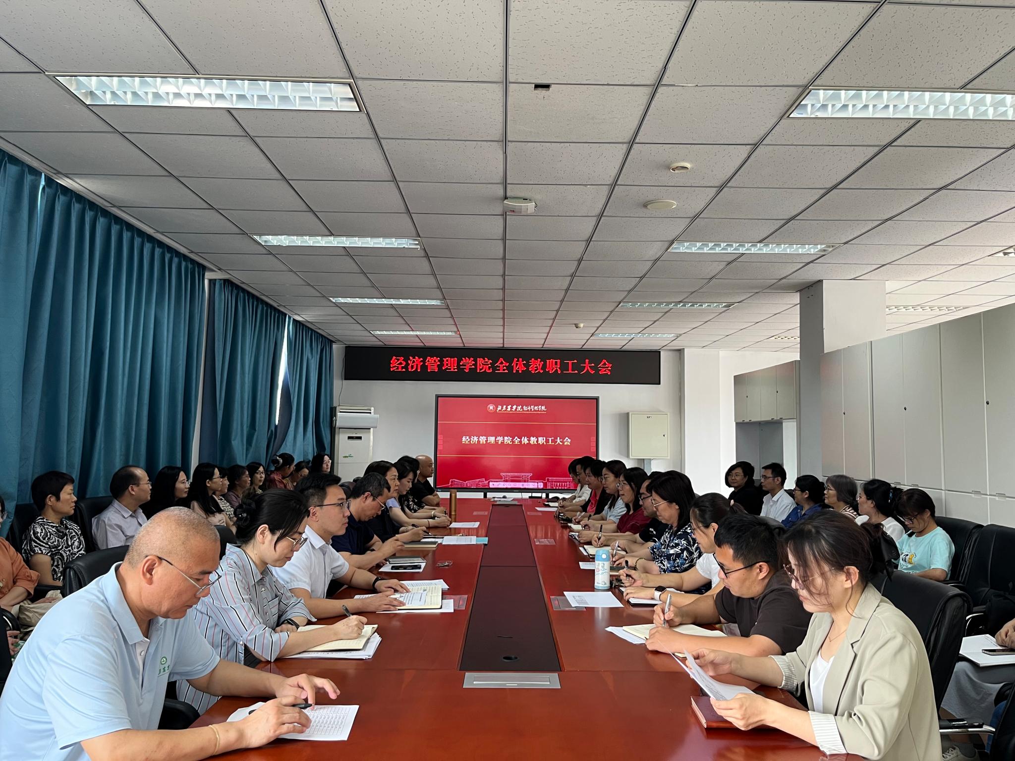 6月25日,經濟管理學院召開全體教職工大會,研究推動重點工作。學院全體教師參加會議,黨委書記劉芳主持會議。