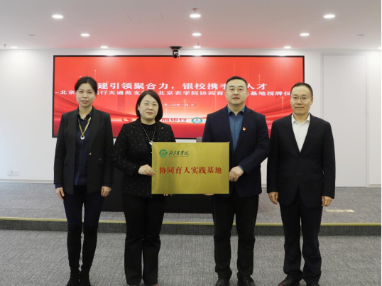 1月14日,我校經(jīng)濟(jì)管理學(xué)院與北京農(nóng)商銀行天通苑支行舉行“協(xié)同育人實(shí)踐基地”授牌儀式。北京農(nóng)商銀行黨委辦公室(黨委巡察辦)主任王嘉秀、北京農(nóng)商銀行天通苑支行黨委書記、行長(zhǎng)李健,北京農(nóng)學(xué)院經(jīng)濟(jì)管理學(xué)院黨委書記劉芳,學(xué)生處處長(zhǎng)李云樂等代表參加活動(dòng)。