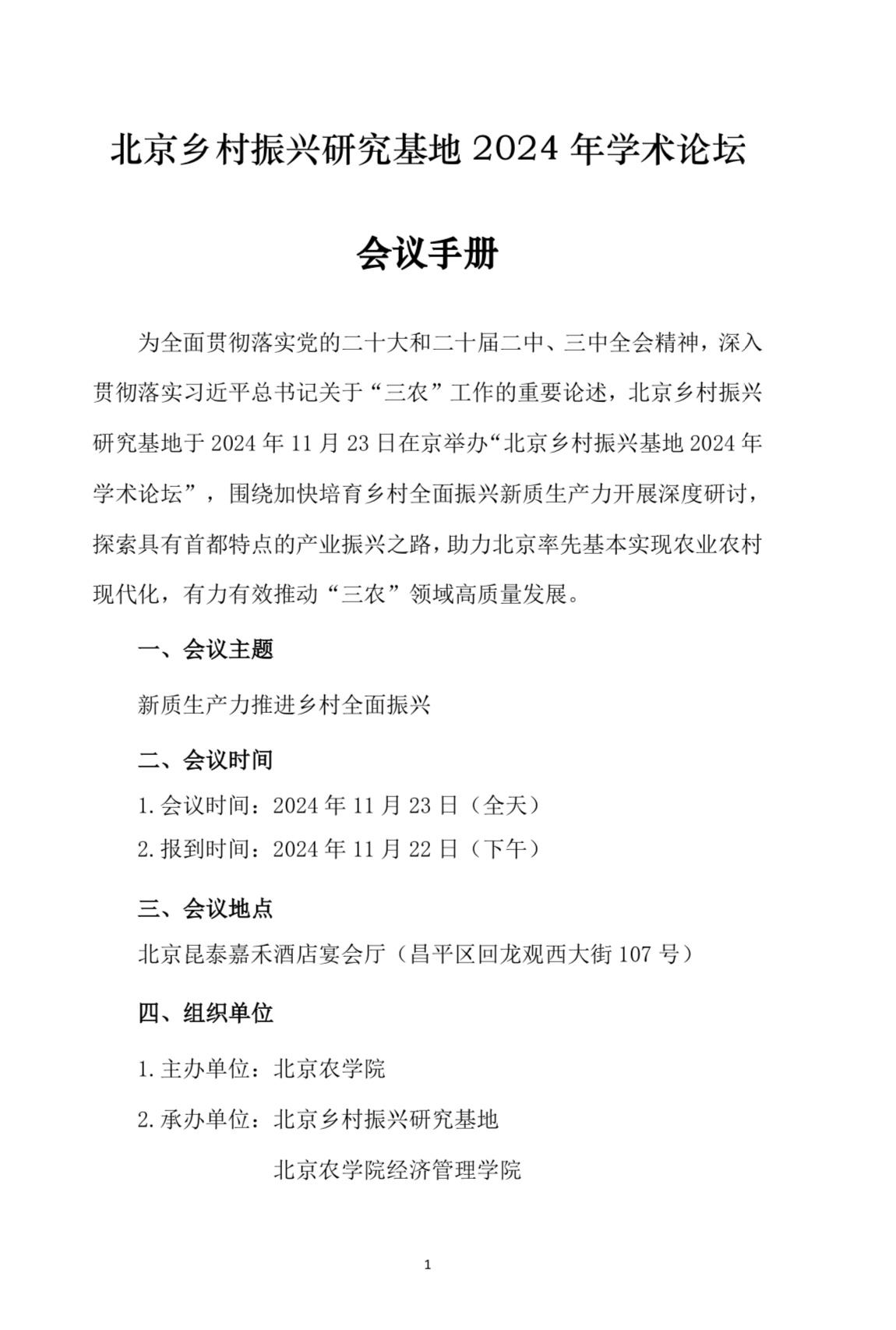 北京鄉村振興研究基地2024年學術論壇