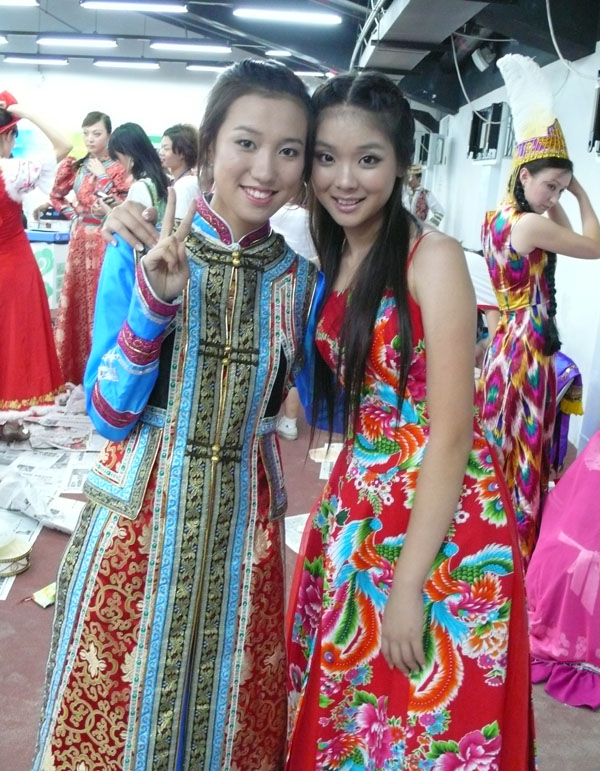 (左為娜莎,圖為娜莎在開幕式前化妝間與同伴合影)