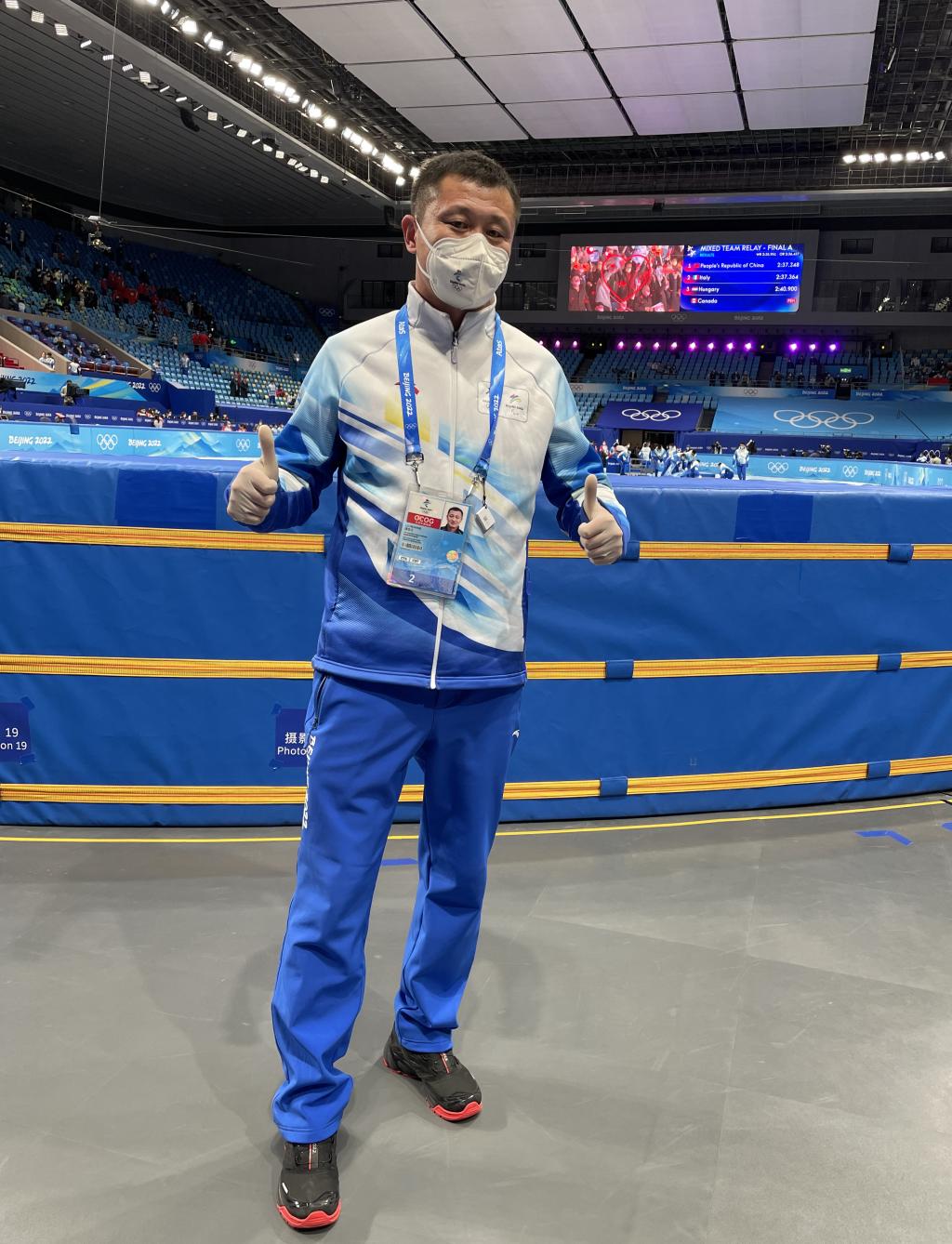 逯合江是短道速滑、速度滑冰國家一級裁判,多次參加國家級、北京市級滑冰比賽執裁工作,曾擔任2021年“相約北京”測試賽短道速滑裁判。他此次擔任北京冬奧會首都體育館短道速滑防護墊檢查員,主要工作就是和團隊同事一起,隨時檢查防護墊,守護短道速滑運動員的安全。