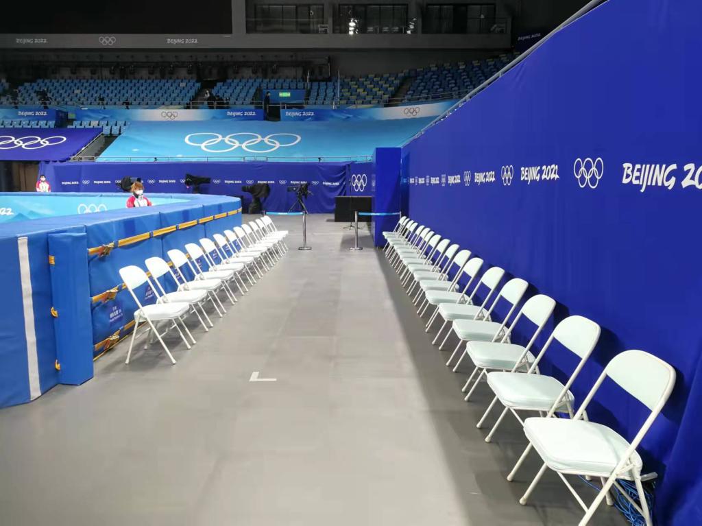 除了檢查防護墊,逯合江還負責短道速滑比賽場地和花樣滑冰比賽場地的轉換工作。冬奧會期間,花樣滑冰和短道速滑兩個項目比賽均在首都體育館內舉行,需要完成30次場地轉換?!拔覀冐撠焾龅剞D換時收回桌椅及時消毒,并以最快速度將裁判長、副裁判長、彎道管理員、內檢區、外檢區、發令區、記圈臺、運動員下冰區、冰車進場口等區域的桌椅和一米欄擺放好。”每次轉場涉及冰面、防護墊、景觀、攝影點位、轉播機位、計時計分、臨時設施等多個環節,需多個業務領域、約200人密切配合,在2小時內全部完成?!懊恳粓霰荣惐澈蠖加泻芏嗳嗽谀ぷ?,雖然每個人的力量有限,但團結協作的力量很強大?!卞趾辖湴恋卣f。
