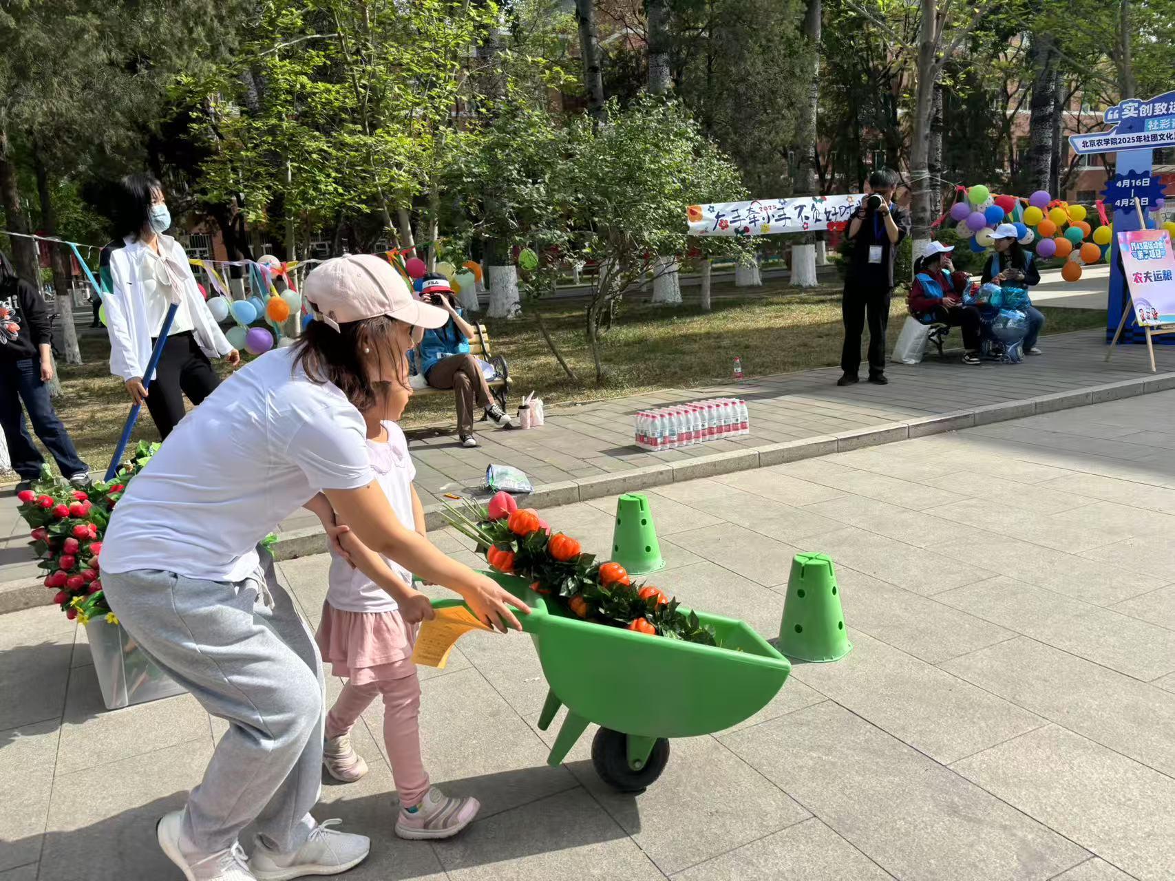 親子項目現場氣氛熱烈,充滿了歡聲笑語。活動設立了設有“農夫運糧”“巧拼地圖”“趕雞入籠”“插秧農事忙”“親子版兩人三足”五項農耕主題趣味項目,巧妙融合學校專業特色,老師們和孩子們默契配合,相互加油鼓勁。教職工家庭在協作中體驗農耕文化、增進親子情感。