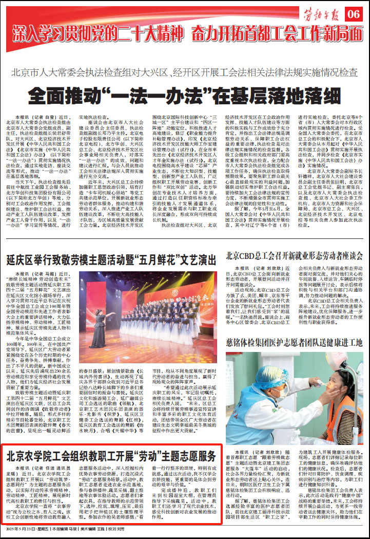近日,北京農學院工會組織教職工開展以“勞動筑夢·志愿同行”為主題的志愿服務活動,以實際行動傳承勞模精神、勞動精神、工匠精神,展現新時代高校教職工的責任與擔當。