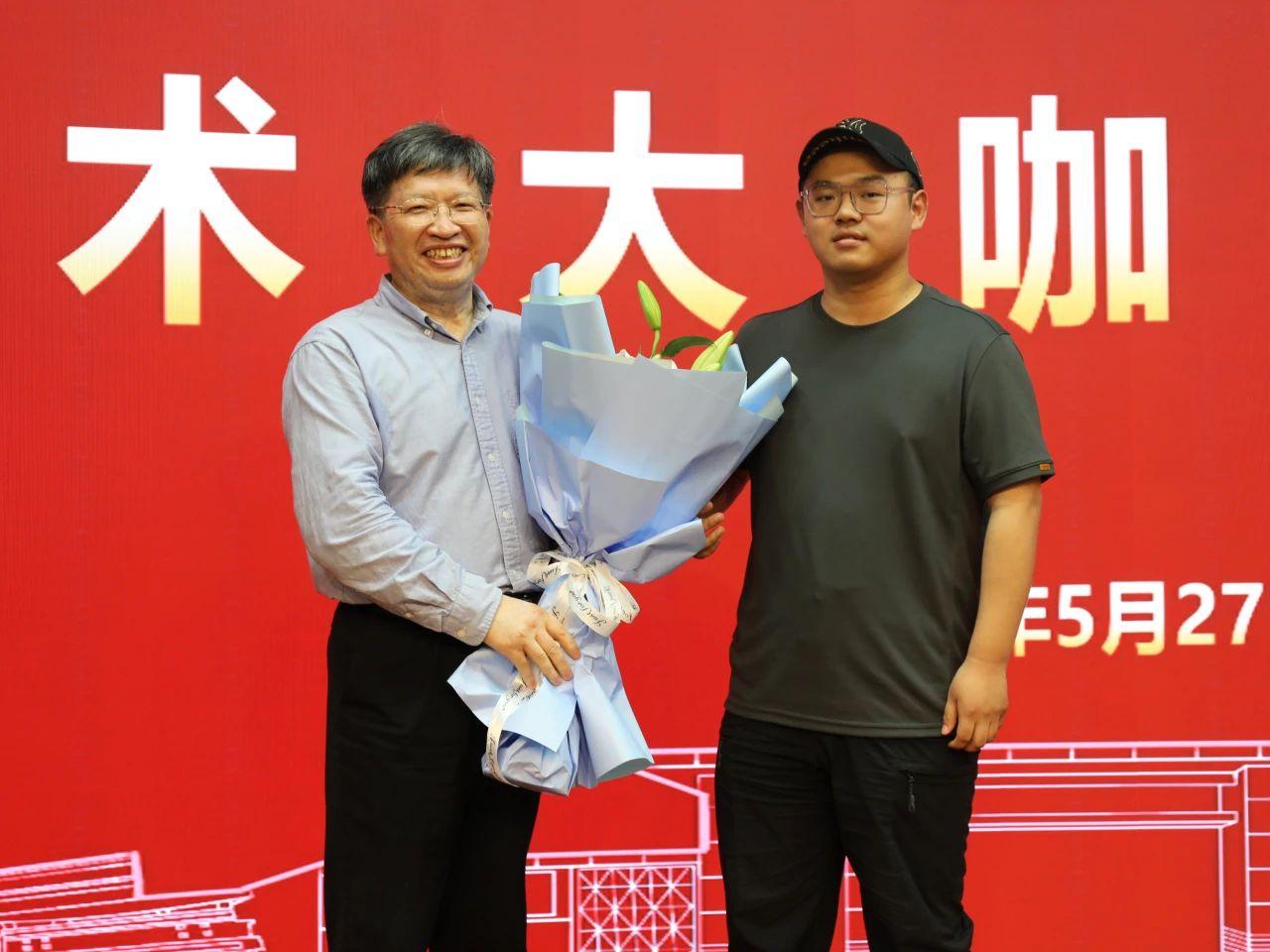 我校研究生張慶榮為鄧院士贈送了小禮物,并匯報了她被中國農科院錄取為博士的好消息。隨后,研究生姚佶林代表師生向鄧院士獻花。