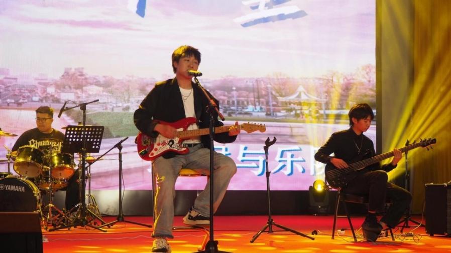 舞臺(tái)上,NEB吉他社以音樂為媒,打破了表演者與觀眾的界限;以五四精神為鮮亮底色,盡情演繹。激昂的節(jié)奏點(diǎn)燃青春熱血,舒緩的音符觸動(dòng)心靈。演奏者們的精彩表現(xiàn),奏響了屬于青春的華章,現(xiàn)場(chǎng)歡呼聲與掌聲交織匯聚!