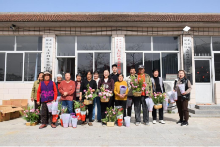 侯芳梅對所帶來的盆花的生態習性,栽培要點進行一一講授,為積極參與插花活動的村民準備30盆紅掌用于獎勵;更運來100余盆包括長壽花、瓜葉菊在內的易養護花卉,供每戶村民認養。領花現場氣氛熱烈,不到半小時盆栽便被領取一空。村里的胡書記感慨道:“這些花花草草就像火種,既美了院子,更暖了人心!”