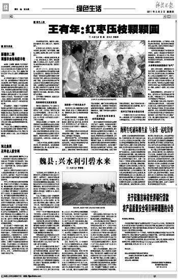 2011年1月14日,在北京人民大會堂,北京農學院院長王有年教授高興地接過大紅獲獎證書,他和他的團隊歷時多年完成的“棗林高效生態調控關鍵技術的研究與示范”項目,獲得2010年國家科技進步獎二等獎。這是針對我國棗樹蟲害嚴重以及國內外市場迫切需要優質安全棗果的形勢,以兼顧保護生態環境和提高棗果產量、質量,系統研究不同生態環境、不同間作環境,棗林有害生物可持續生態調控關鍵技術的方法與措施,滿足市場上對安全棗產品的需求。