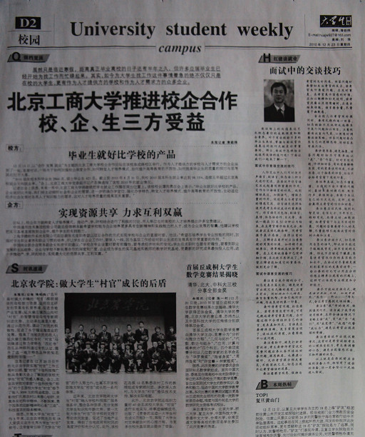 此外,北京農學院還組織力量對40余名該校大學生“村官”進行實地采寫,將事跡編輯成書,出版了《青春的足跡—大學生村官成長歷程》一書,展現了大學生“村官”奉獻農村的心理歷程,為更多在校生基層就業提供了借鑒。