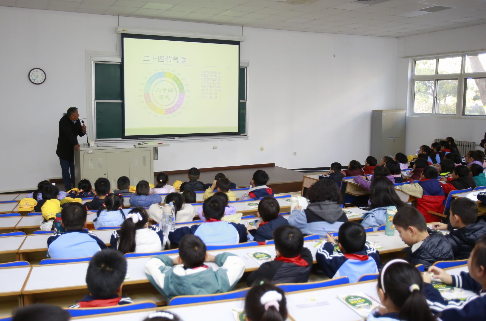 在節氣科普區,學生們聆聽二十四節氣科普講座,通過看顏色、聞氣味等五感體驗,記錄物候特征并完成節氣匹配任務。學生們還走進食品車間,見證小麥變面條、水果變罐頭的全過程,在國家級大學科技園成果展廳,智能蜂箱、抗病小麥等科技成果讓學生們目不暇接。