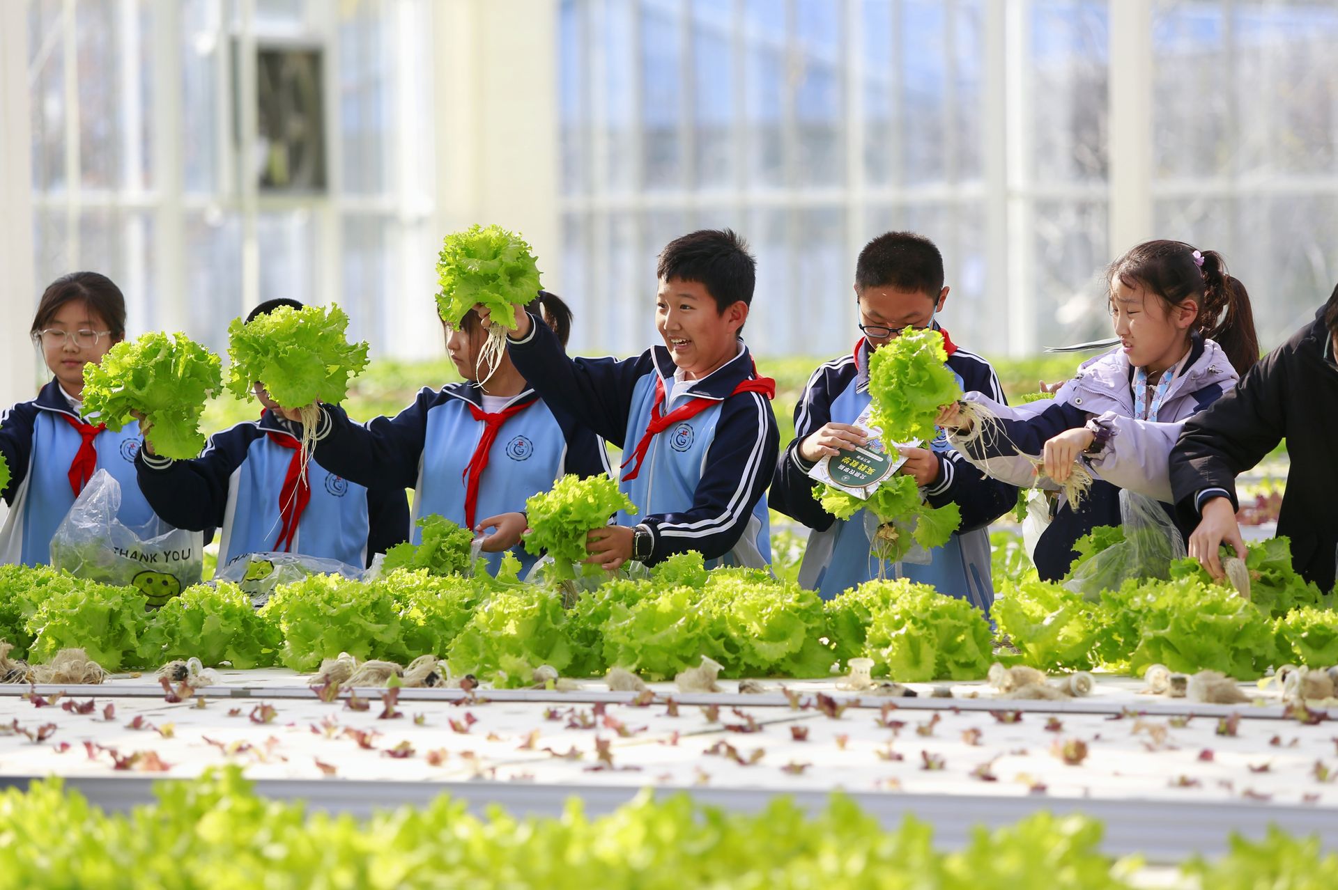 “沒有土壤,植物怎么生長?這里采用無土栽培技術,營養液替代土壤提供養分,溫室里的傳感器還能實時監測溫濕度、光照數據。” 在智能聯動溫室里,北京農學院教師高坦坦正在為學生們講解。廣寧村小學六年級(1)班學生吳昊恩告訴記者:“看到這些綠油油的蔬菜在沒有土壤的情況下,依然能夠長得很好。對比班級種植箱里的作物,真切感受到科技種植的震撼。”在溫室一角,學生們親手采摘無土栽培的生菜,吳昊恩捧著新鮮蔬菜告訴記者:“這是自己摘的菜,回家要讓爸媽做成炒菜嘗嘗,看看味道有何不同。”