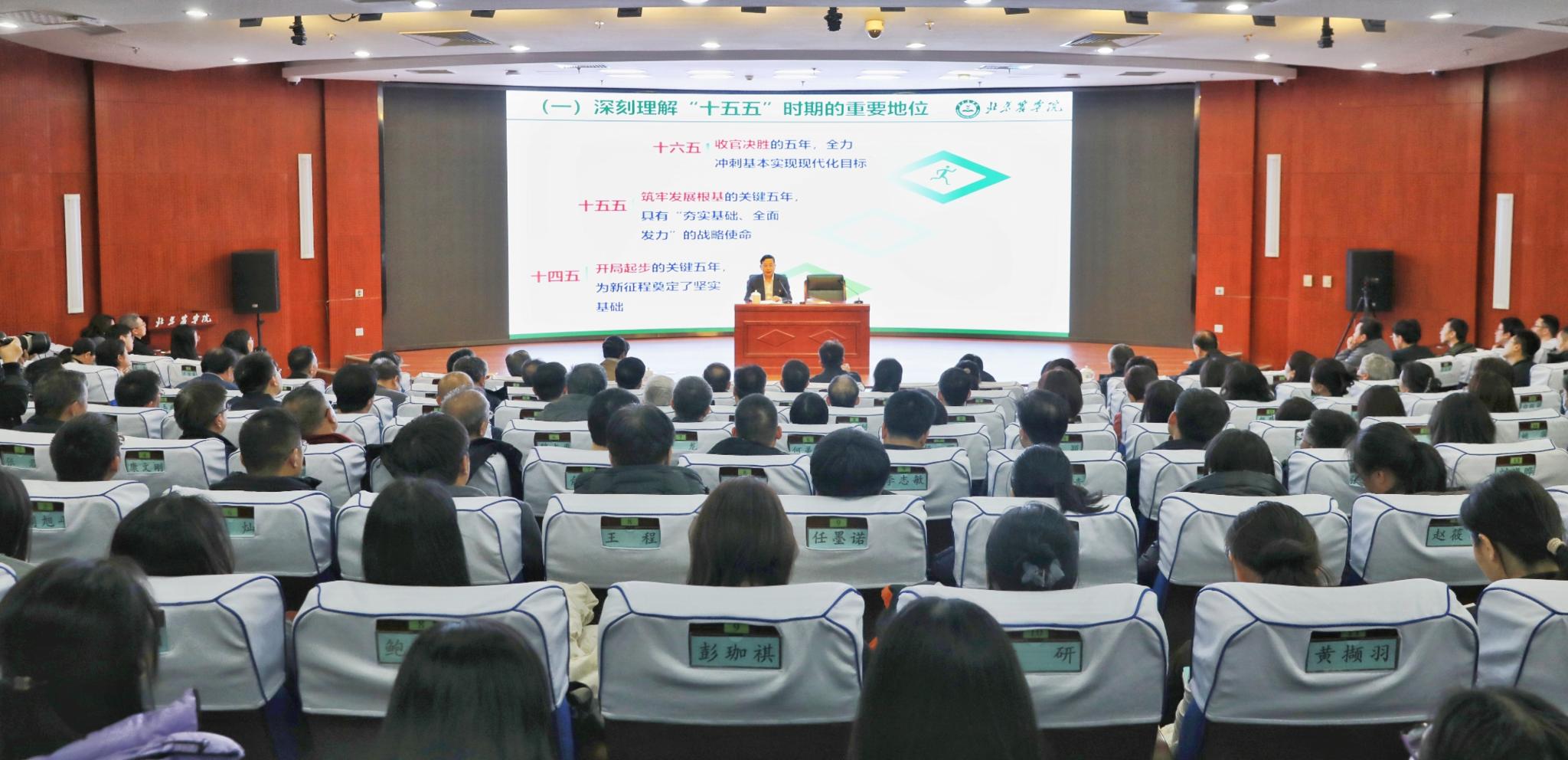 報(bào)告會(huì)上,段留生緊密圍繞主題進(jìn)行了系統(tǒng)深入的闡述和宣講。他指出,黨的二十屆四中全會(huì)通過(guò)的《中共中央關(guān)于制定國(guó)民經(jīng)濟(jì)和社會(huì)發(fā)展第十五個(gè)五年規(guī)劃的建議》,對(duì)未來(lái)五年我國(guó)經(jīng)濟(jì)社會(huì)發(fā)展作出戰(zhàn)略擘畫和重要部署。要深刻理解“十五五”時(shí)期的重要地位,精準(zhǔn)把握全會(huì)提出的新論斷新部署,深刻學(xué)習(xí)、重點(diǎn)把握全會(huì)關(guān)于“高水平科技自立自強(qiáng)”“教育科技人才一體化”“鄉(xiāng)村全面振興”“美麗中國(guó)建設(shè)”的部署和要求,著眼首都“四個(gè)中心”功能建設(shè)和建設(shè)教育強(qiáng)國(guó)首善之區(qū)、率先基本實(shí)現(xiàn)農(nóng)業(yè)農(nóng)村現(xiàn)代化等重要需求,深入分析研判學(xué)校發(fā)展面臨的形勢(shì)與環(huán)境、機(jī)遇與挑戰(zhàn),在認(rèn)真完成學(xué)校“十四五”目標(biāo)任務(wù)的基礎(chǔ)上,高質(zhì)量謀劃學(xué)校“十五五”時(shí)期事業(yè)發(fā)展,持續(xù)推動(dòng)學(xué)校事業(yè)高質(zhì)量發(fā)展再上新臺(tái)階。