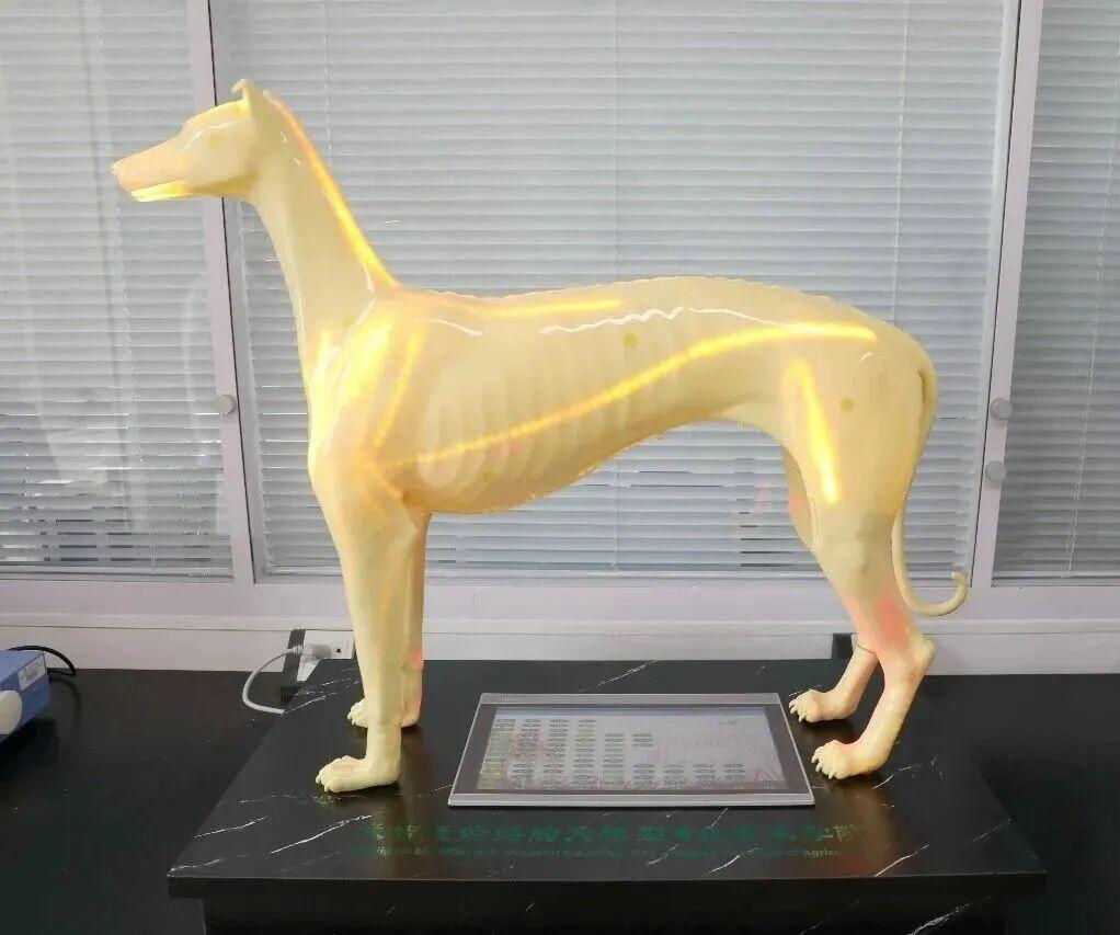 針灸犬的外形也在不斷進化,最終選擇了中國細犬的造型,酷似古代神話里的哮天犬形象,體型偏瘦,肋骨突出。姜代勛解釋,這是為了幫助學生更好地定位,“骨頭就像坐標,比如小狗的足三里穴就在脛骨粗隆外下方,距脛骨嵴1寸處。摸到脛骨就能找到穴位。”