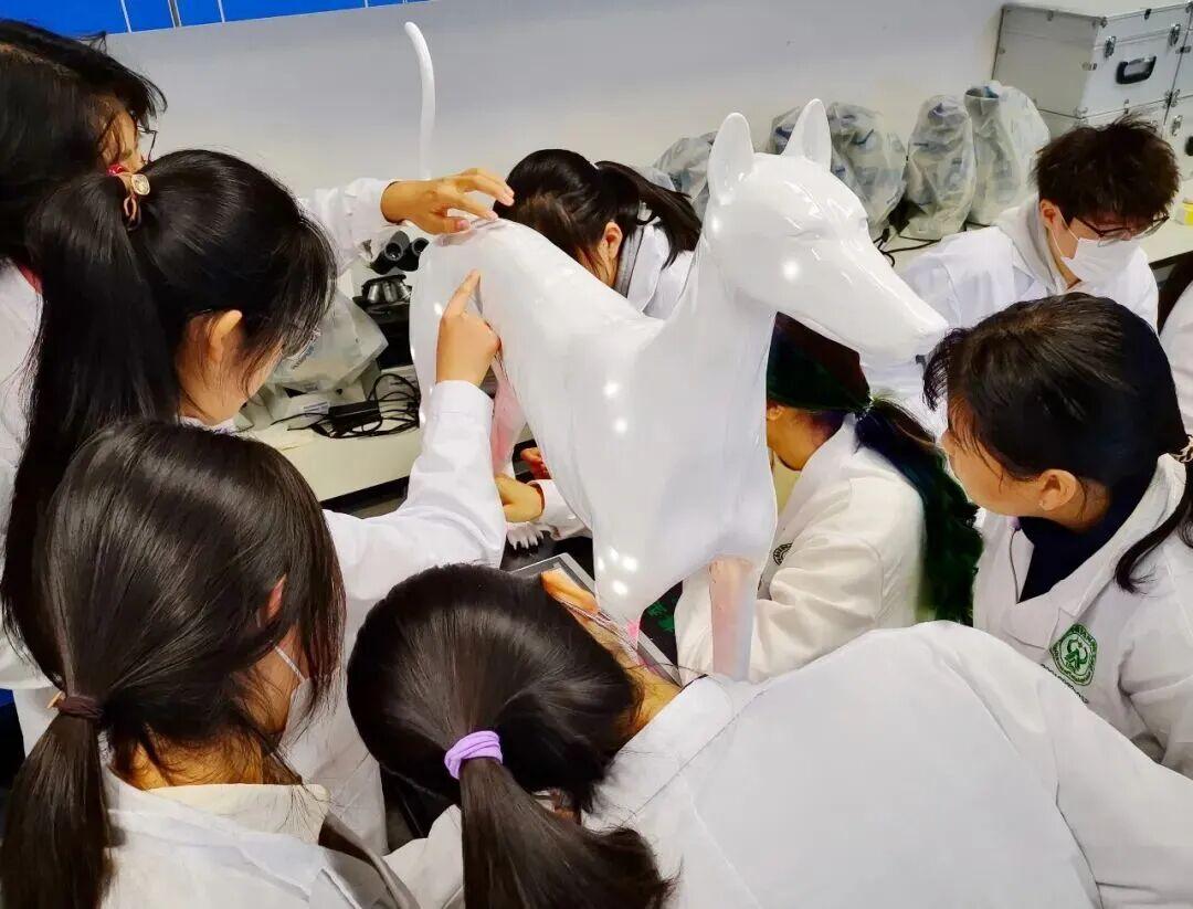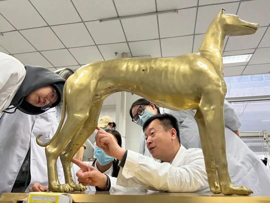 北京農學院動物醫學專業學生率先在中獸醫實操課用上了針灸銅犬、智能針灸犬等新教具。
