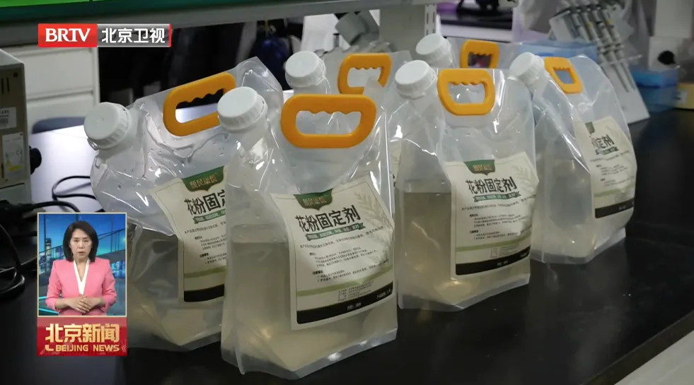 北京農學院植物科學技術學院教授邢宇說:“這一袋固定劑可以兌到容量一噸的噴水車里,如果噴水,一天要噴三到五回,但如果噴我們的產品,一天只用噴一次,即可以使花粉有效沉降對比噴水達到20倍以上。”