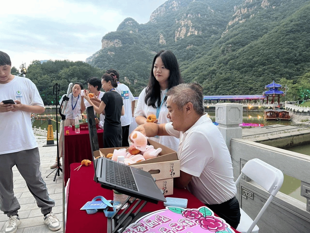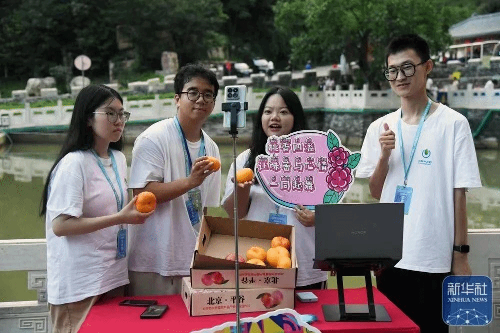 來自北京農學院的“桃往獨樂小隊”學生來到了南獨樂河鎮北獨樂河村,在駐村第一書記和教師指導下,參加了在國農港供銷村播產業園舉辦的平谷區“千桃百選”市集暨“千人百村”村播助農活動,他們用生動的語言與專業技能與觀眾進行互動,將南獨樂河鎮北獨樂河村的鄉村故事、特色文化和農特產品傳遞給千家萬戶,短短兩個小時,觀看量突破500人次,累計點贊量達1.2萬次。