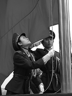 “國(guó)旗班的磨煉使我們從柔弱的獨(dú)生女蛻變成了勇敢的護(hù)旗戰(zhàn)士。”談起國(guó)旗班的收獲,這些花季女孩不約而同地說(shuō)道。“在接近零度的天氣里,大家都不能戴手套,手都凍成了紫紅色;夏天的太陽(yáng)照得眼睛都睜不開,穿著厚厚的軍裝一站就是一小時(shí)。”第九屆國(guó)旗班戰(zhàn)士劉洋回憶說(shuō)。