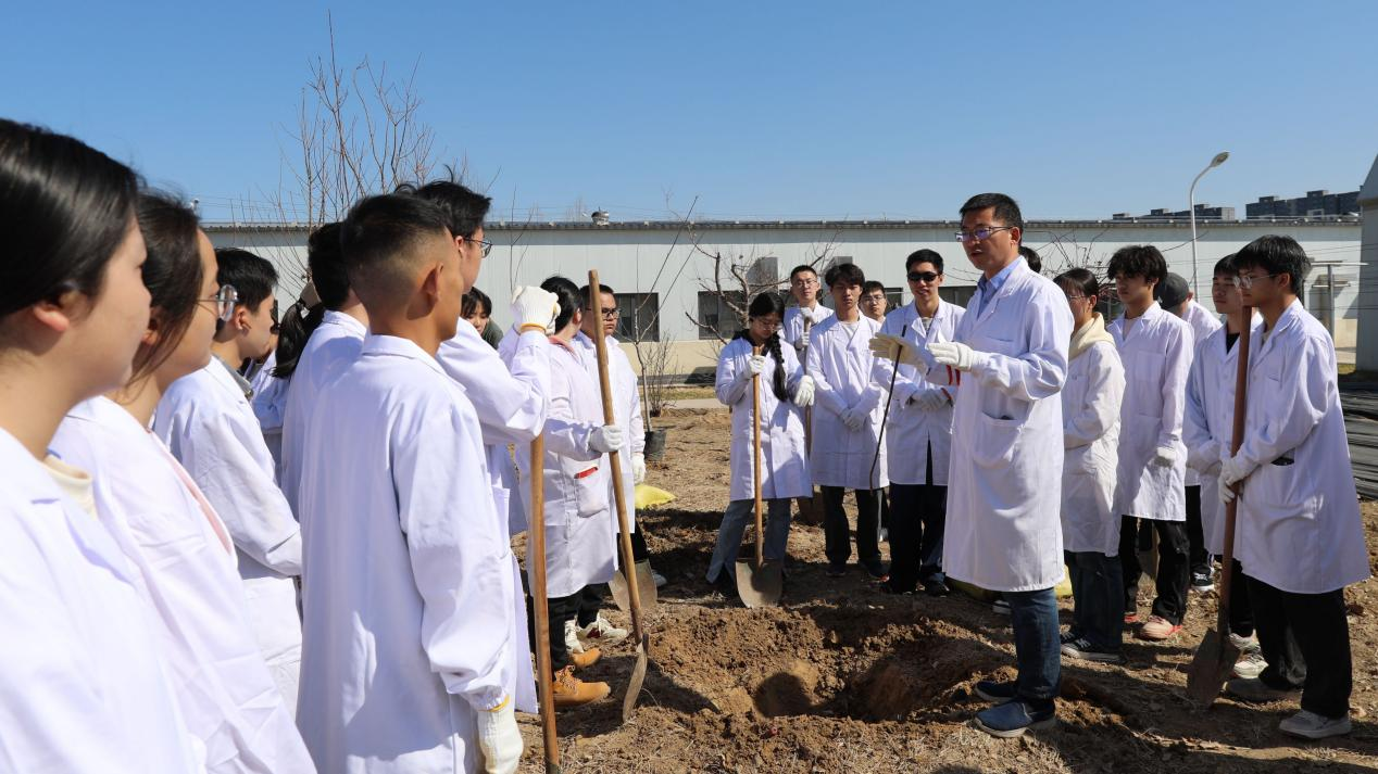 “今天這堂課,既是一堂專業(yè)課,也是一堂勞動教育課,更是一堂‘大思政課’。”張卿說道。同學(xué)們今后將在這片果園中學(xué)習(xí)果樹高光效樹形管理、機械化管理和病蟲害綠色防控等專業(yè)知識和先進(jìn)的果園管理技術(shù),并將這些先進(jìn)的知識和技術(shù)推廣到京郊果園,用農(nóng)業(yè)科技幫助果農(nóng)增收致富。“在今天這個特殊的日子,希望能用這樣的方式將課堂學(xué)習(xí)和鄉(xiāng)村實踐緊密結(jié)合起來,講深、講透、講活‘綠色故事’中的‘紅色道理’,既教會學(xué)生扎實的專業(yè)知識,更引領(lǐng)學(xué)生厚植愛農(nóng)情懷、練就興農(nóng)本領(lǐng)。”