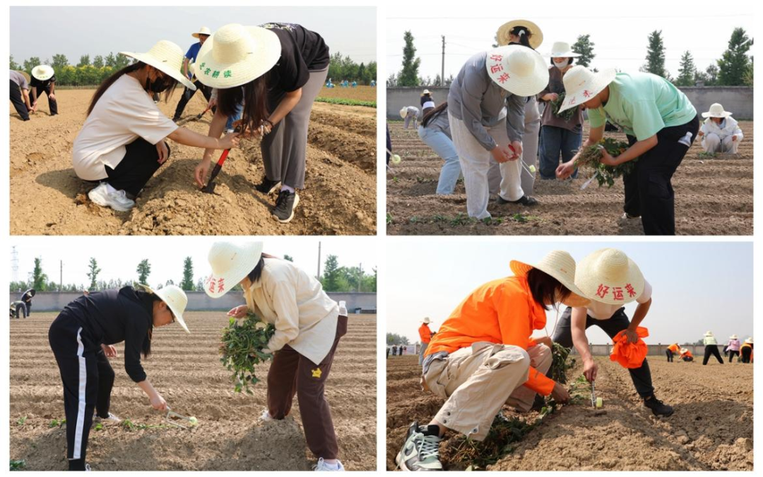 雖然天氣炎熱,但大學生與中、小學生共同組隊,你來挖土、我來播種,不怕苦、不怕累,“大手拉小手”繪就了一幅和諧的勞動畫卷。經過2個小時的辛勤勞動,500余名師生在60余畝土地上種上了甘薯、花生、鮮食玉米和向日葵等。