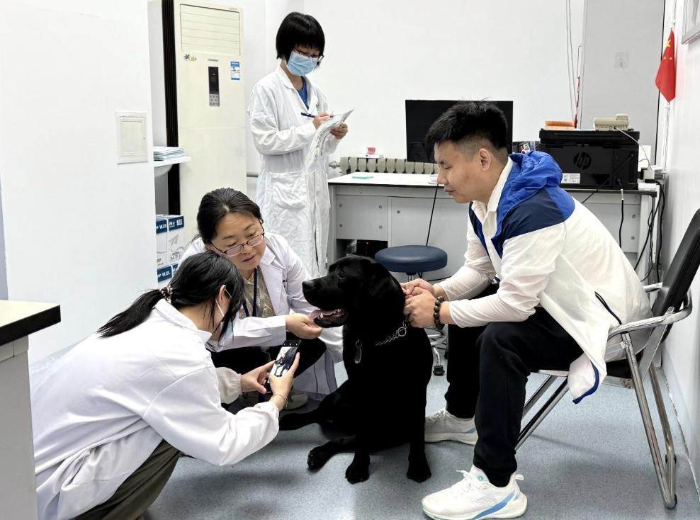 工作人員為13只北京市在役導(dǎo)盲犬提供免費(fèi)體檢。受訪者供圖