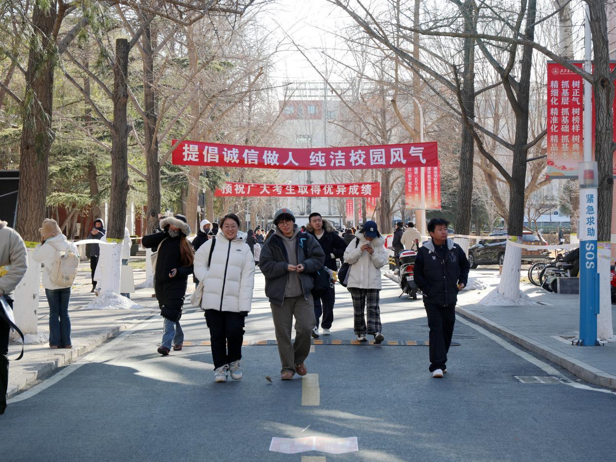 學校用一系列暖心舉措為考研學子護航。為減少低溫天氣對考生的影響,學校在考試樓內一層設置存包處與熱水供應點,考生可在室內候考;開放學校第二食堂供考生用餐,并向考生提供免費熱粥;開放大禮堂供考生休息,助力考生以最佳狀態應考;專門設置醫療點,提供口罩、濕巾等物品和應急藥品,校醫院工作人員全程為有需要的考生提供醫療服務。