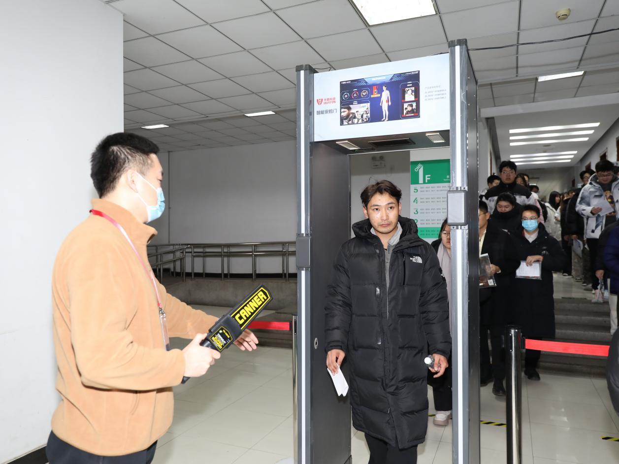 本次考試全面啟用智能安檢門,實現5G頻段無線信號屏蔽全覆蓋,嚴格執行智能通訊設備不得帶入考點的規定,并組織全體考務人員完成系統培訓與考核,確保全員達標上崗。