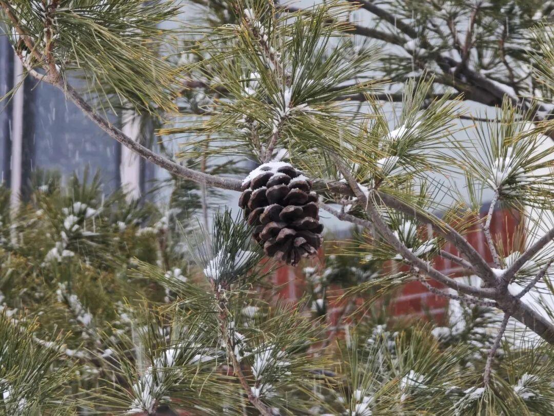 松針托起細碎的冰晶,梧桐枝彎成雪白的弧線