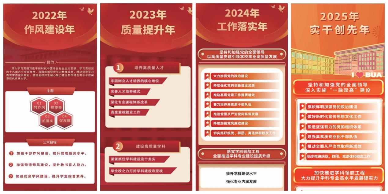堅(jiān)持以高質(zhì)量黨建為引領(lǐng),勝利召開第四次黨代會(huì),確定“1956”的發(fā)展戰(zhàn)略和舉措,明確了建設(shè)國內(nèi)一流國際知名都市農(nóng)林特色高水平應(yīng)用型大學(xué)奮斗目標(biāo)。聚焦“都市型現(xiàn)代農(nóng)林高等教育”的辦學(xué)特色,修訂《北京農(nóng)學(xué)院章程》,圍繞落實(shí)教育強(qiáng)國建設(shè)規(guī)劃綱要,制定《北京農(nóng)學(xué)院分類卓越發(fā)展行動(dòng)工作方案》《北京農(nóng)學(xué)院落實(shí)加快建設(shè)教育強(qiáng)國首善之區(qū)三年行動(dòng)計(jì)劃實(shí)施方案》等文件,深化內(nèi)涵、特色、差異化發(fā)展。圍繞高質(zhì)量發(fā)展,堅(jiān)持每年一個(gè)鮮明主題,以“作風(fēng)建設(shè)年”“質(zhì)量提升年”“工作落實(shí)年”“實(shí)干創(chuàng)先年”為抓手,大力營造風(fēng)清氣正、擔(dān)當(dāng)作為的濃厚氛圍,全力推動(dòng)學(xué)校改革發(fā)展進(jìn)入“快車道”。2023年度、2024年度,學(xué)校領(lǐng)導(dǎo)班子考核結(jié)果均為“優(yōu)秀”。2023年度,全市高校分類發(fā)展績效考核結(jié)果為“優(yōu)秀”。2022年度、2024年度,學(xué)校黨委書記在北京高校黨委書記(黨委)抓基層黨建工作述職評議考核中,綜合評價(jià)等次均為“好”。
