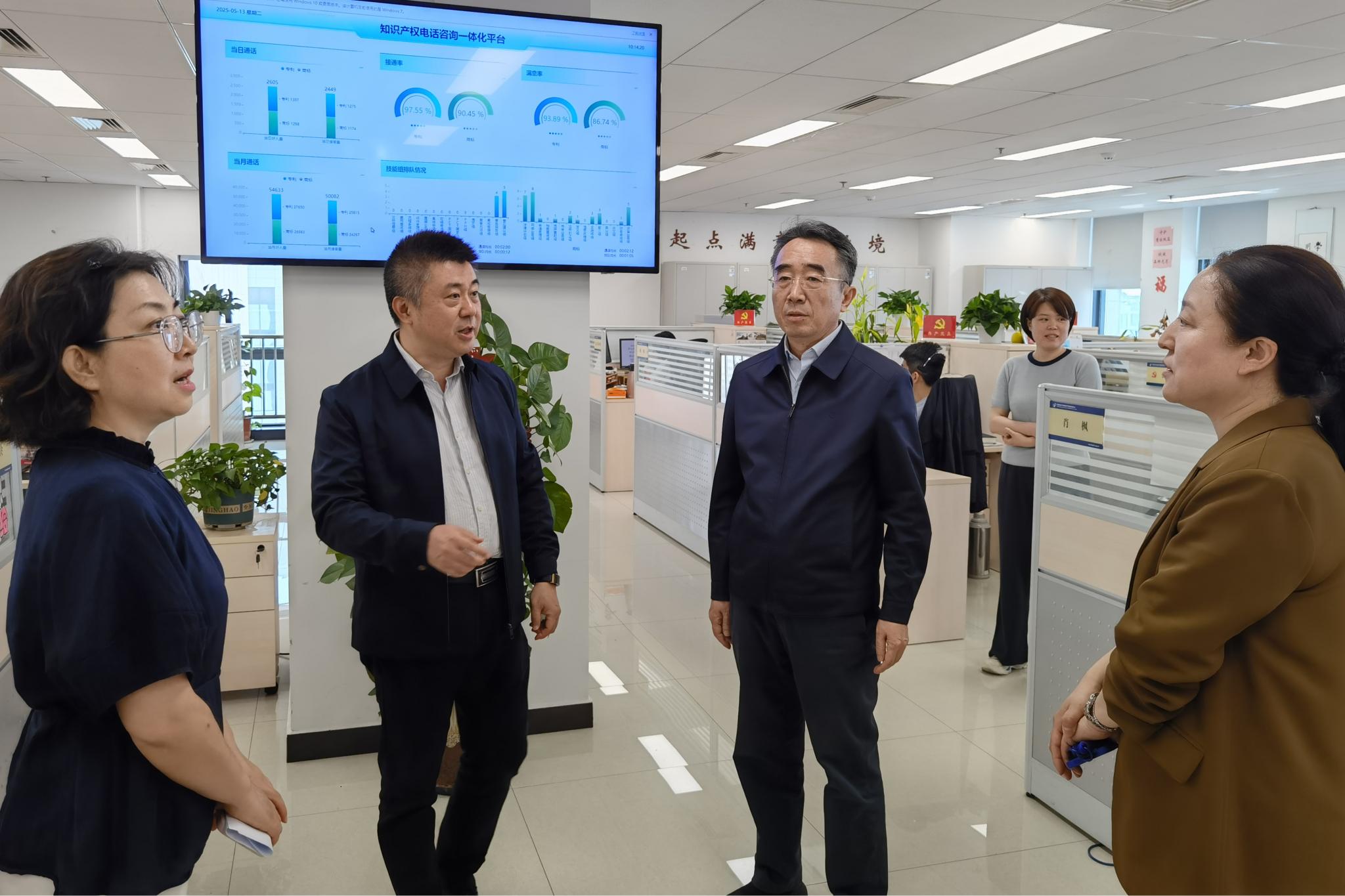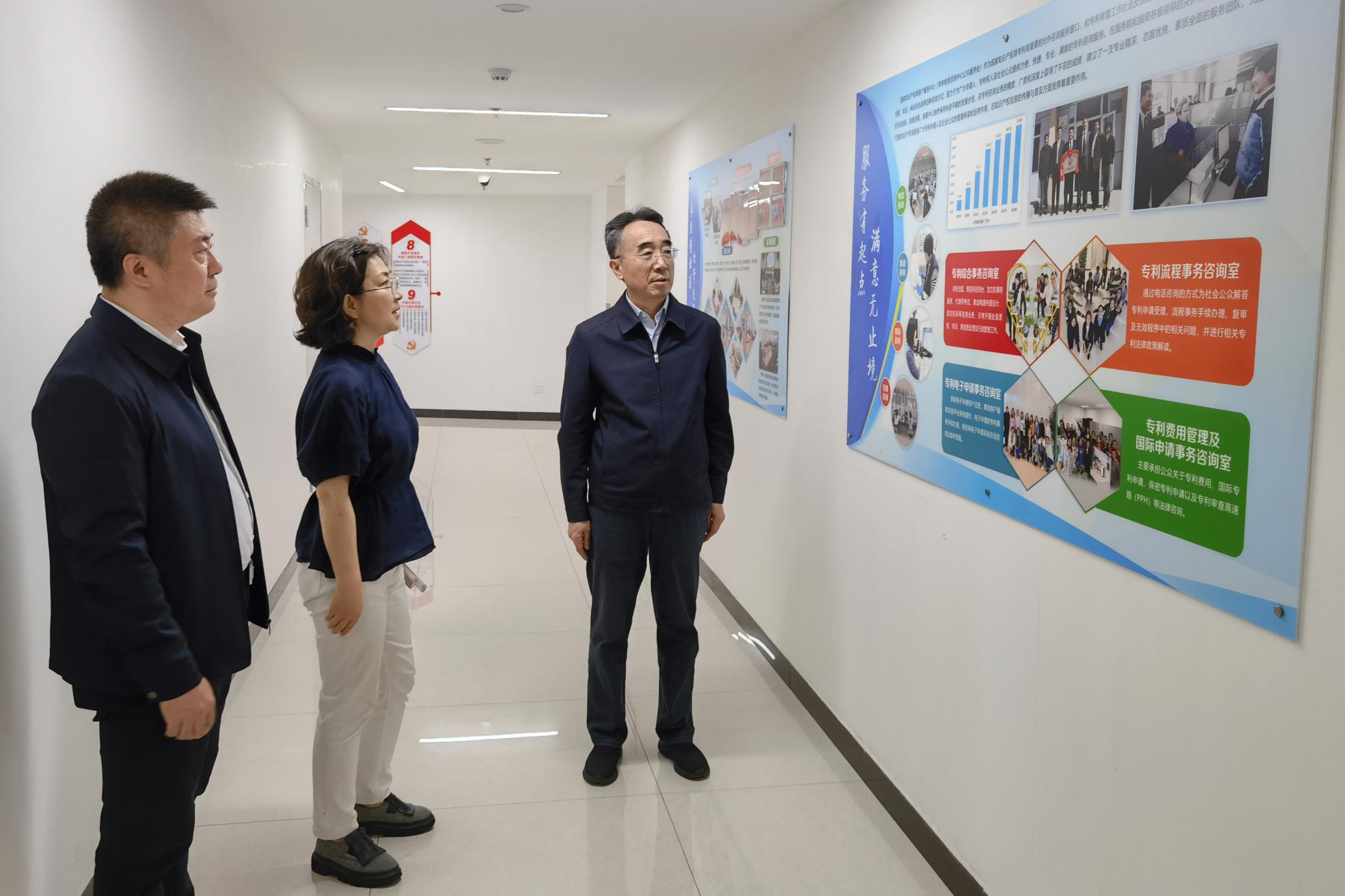 趙鋒一行實地調研了知識產權檢索咨詢中心業務功能室,深入了解國家知識產權局知識產權檢索咨詢中心在商標、專利等知識產權文獻檢索、評價及咨詢服務以及輔助審查審理等工作情況。