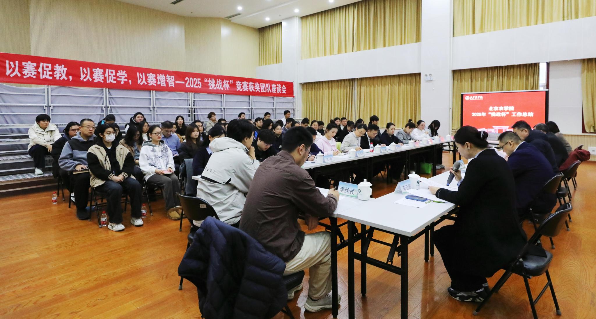 趙鋒代表學校向在2025年“挑戰杯”各級賽事中取得優異成績的全體參賽師生表示祝賀。他指出,今年我校在“挑戰杯”賽事中實現歷史性突破,充分展現了北農學子的創新精神和學校科創育人的扎實成效,是學校落實立德樹人根本任務的生動實踐。趙鋒強調,要深入學習貫徹黨的二十屆四中全會精神和全國全市教育大會精神,深化“三全育人”,推進“五育并舉”,以“挑戰杯”賽事為牽引,推動科創活動向“全員覆蓋”延伸。要強化榜樣引領,持續樹正氣樹榜樣樹典型,推動形成“榜樣引領、全員跟進”的科創育人新格局。要鼓勵學生將學科專業知識與“三農”發展、行業發展、經濟社會發展需求相結合,以賽促教、以賽促學、以賽增智,在競賽中厚植愛農情懷,練就興農本領。要進一步健全保障機制,加強部門協同和資源整合,為師生創新實踐提供全鏈條支撐,打造可持續發展的“北農科創”品牌,推動競賽成果與科研攻關、社會服務深度融合,為持續推動學校高質量發展和北京建設教育強國首善之區貢獻智慧和力量。