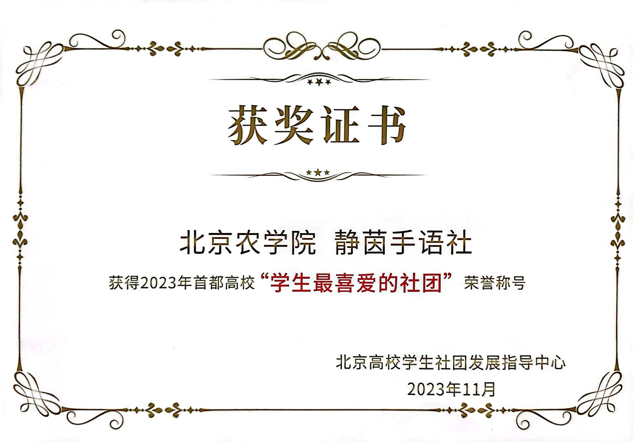 我校靜茵手語社成立于2005年,社團以“用靈動的雙手架起溝通的橋梁”為宗旨,努力學習和推廣手語,促進大學生對聽障人士群體的了解與關愛,幫助更多聽障人士解決生活中的困難。靜茵手語社積極參加各項公益活動,先后參與首都醫科大學附屬北京朝陽醫院義診翻譯活動、百名手語族獻禮國際殘疾人日《愛的陽光》視頻錄制、學校手語版冬奧主題曲《一起向未來》錄制、“關愛自閉癥兒童之陪伴是最長情的告白”主題歡樂融合公益活動。社團還先后獲首都高校手語社團聯盟第一屆手語大賽團體及個人賽一等獎、“手傳心聲——傳遞指尖上的愛”手語大賽團體三等獎、個人一等獎等。