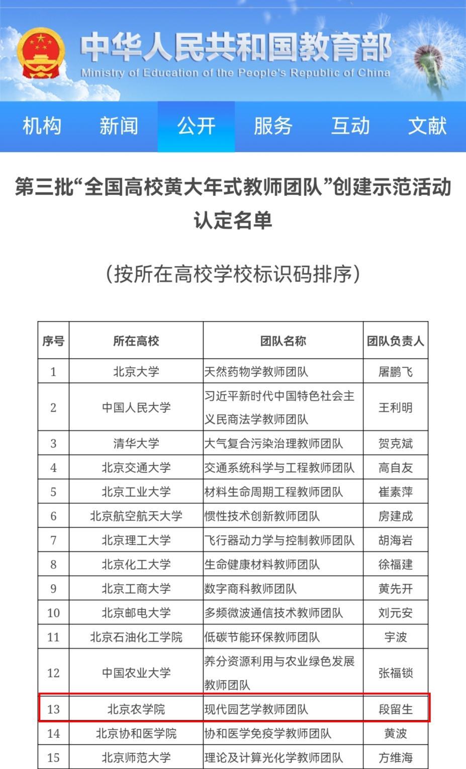 近日,教育部發布了第三批“全國高校黃大年式教師團隊”創建示范活動認定名單和第四批“全國高校黃大年式教師團隊”創建示范活動入圍名單。我校“全國高校黃大年式教師團隊”——現代園藝學教師團隊,順利通過創建示范活動認定。