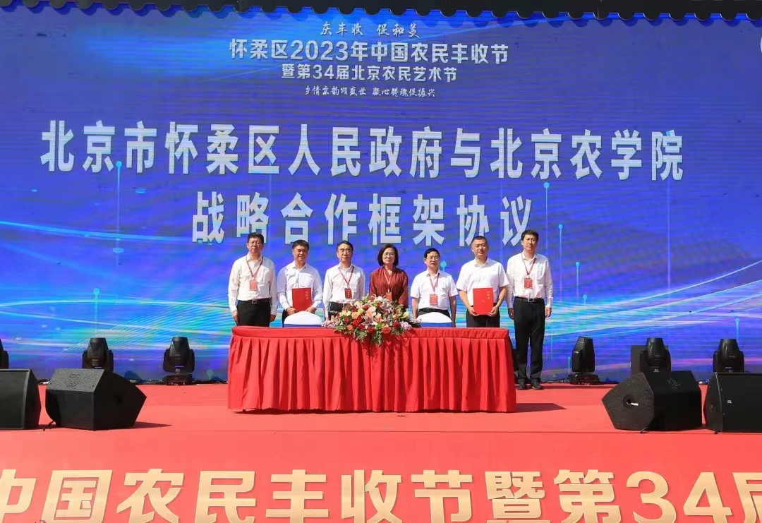 9月23日,2023年懷柔區(qū)中國(guó)農(nóng)民豐收節(jié)暨第34屆北京農(nóng)民藝術(shù)節(jié)在北房鎮(zhèn)開(kāi)幕。開(kāi)幕式上,我校與懷柔區(qū)人民政府簽署戰(zhàn)略合作協(xié)議,校地?cái)y手共謀高質(zhì)量發(fā)展,共同服務(wù)新時(shí)代首都發(fā)展。學(xué)校黨委書記趙鋒,黨委副書記、院長(zhǎng)段留生,黨委常委、副院長(zhǎng)張勁柏應(yīng)邀出席活動(dòng)。