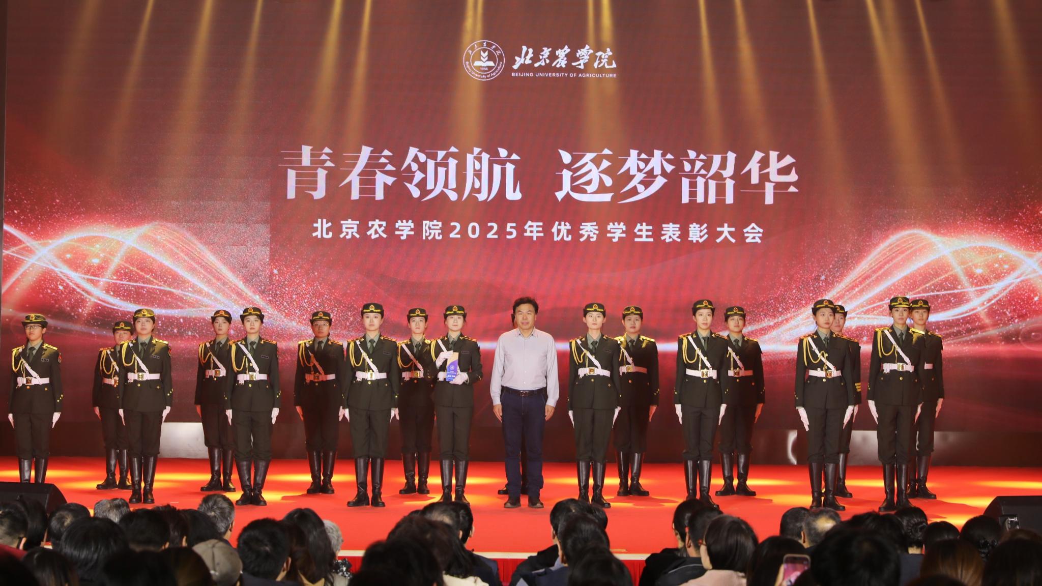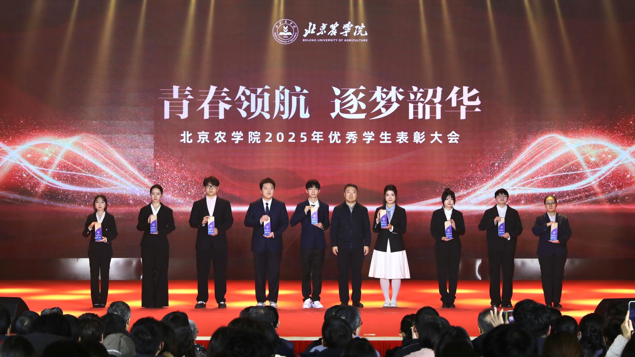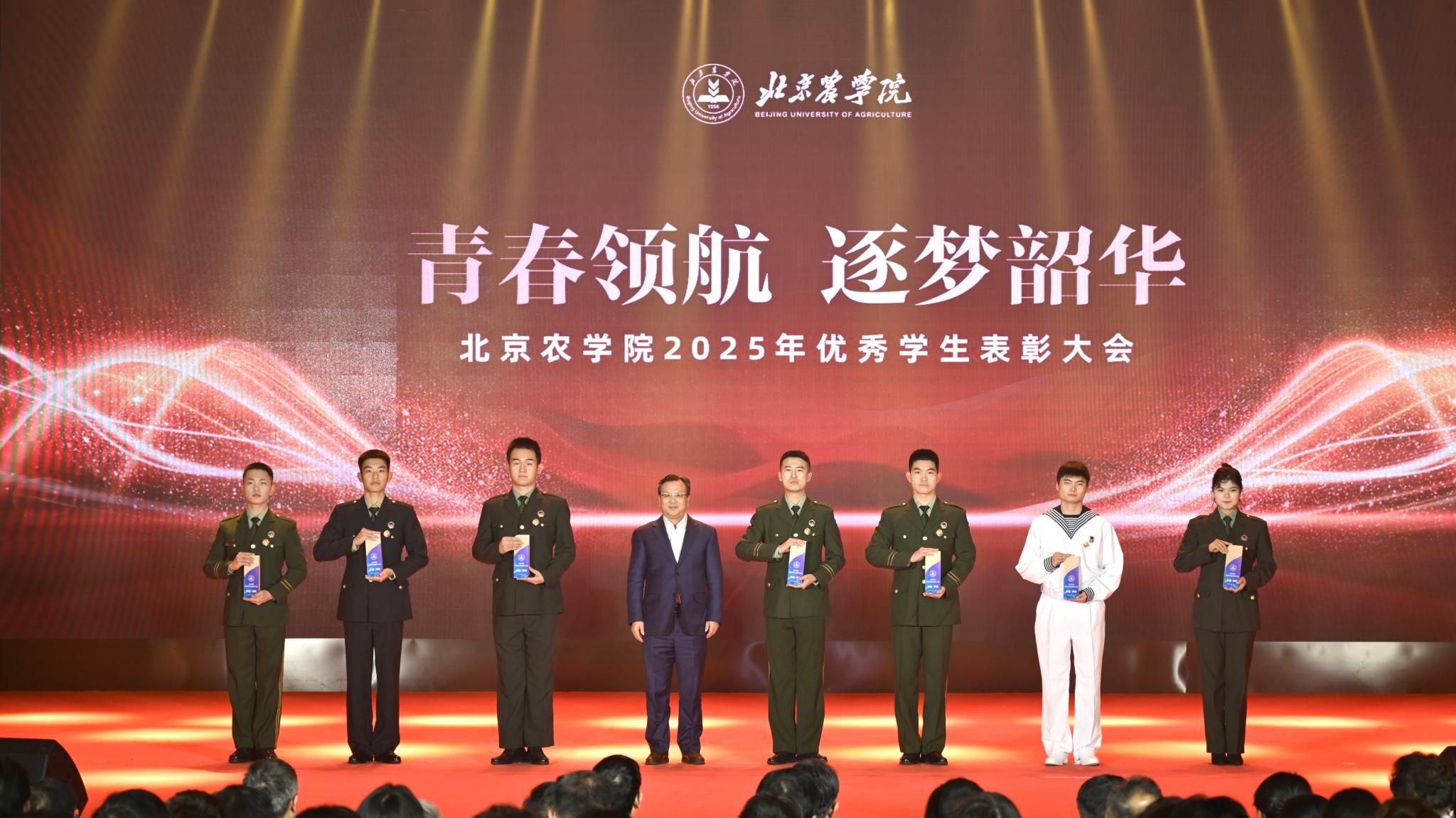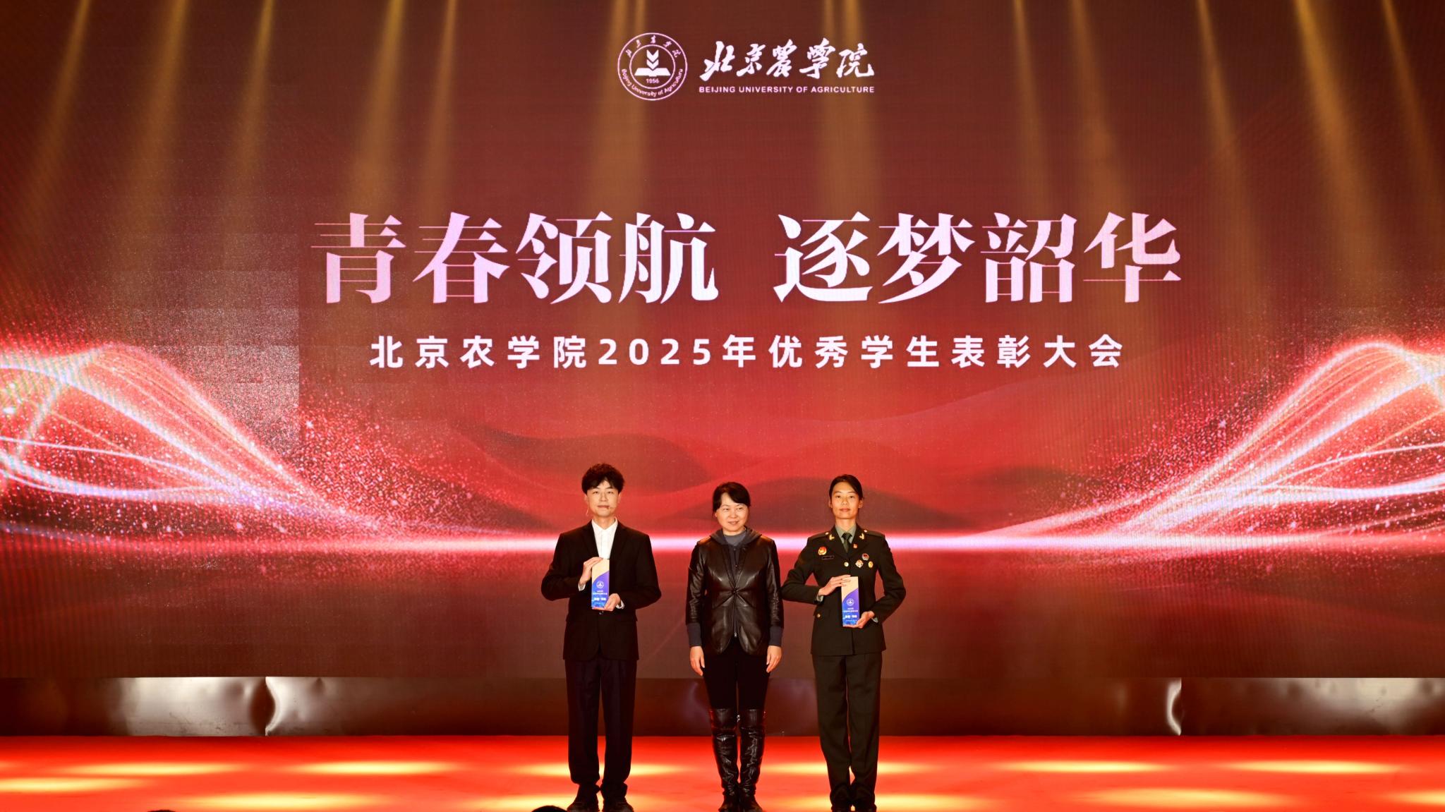 校領(lǐng)導(dǎo)分別為優(yōu)秀畢業(yè)生代表、北京高校紅色“1+1”示范活動(dòng)獲獎(jiǎng)黨支部、北京農(nóng)學(xué)院國旗班、“四有”優(yōu)秀士兵代表、紀(jì)念中國人民抗日戰(zhàn)爭暨世界反法西斯戰(zhàn)爭勝利80周年大會(huì)廣場合唱團(tuán)及民兵方隊(duì)代表頒獎(jiǎng),表彰堅(jiān)守信仰、愛國奉獻(xiàn)的青春力量;為社會(huì)實(shí)踐優(yōu)秀團(tuán)隊(duì)與先進(jìn)個(gè)人、心理健康類、體育類、文藝類獲獎(jiǎng)學(xué)生代表頒獎(jiǎng),表彰知行合一、全面發(fā)展的奮進(jìn)榜樣;為市級(jí)先進(jìn)班集體、市級(jí)優(yōu)秀學(xué)生干部、市級(jí)三好學(xué)生、國家獎(jiǎng)學(xué)金獲得者代表、“挑戰(zhàn)杯”及各類科創(chuàng)競賽獲獎(jiǎng)團(tuán)隊(duì)代表頒獎(jiǎng),表彰勤學(xué)善思、勇于創(chuàng)新的先進(jìn)典型。