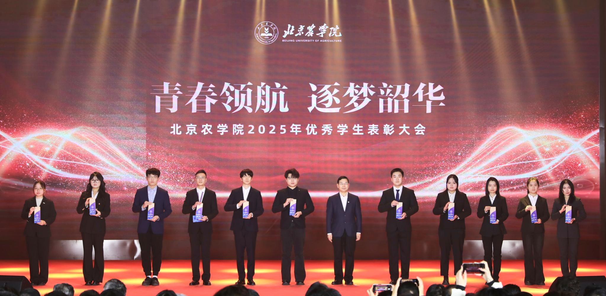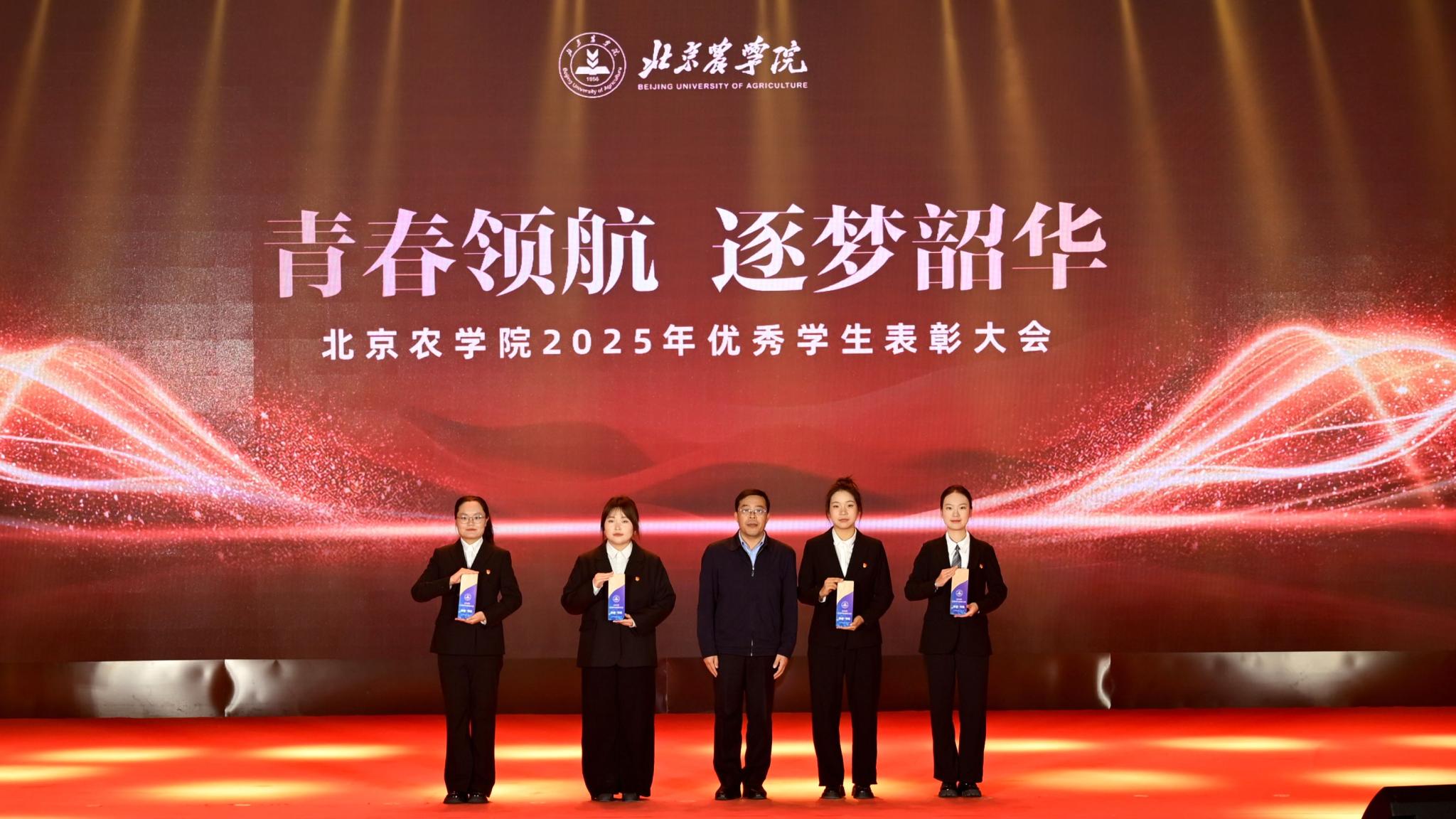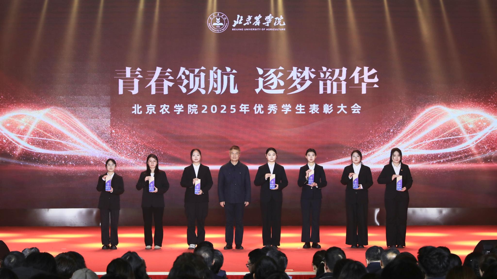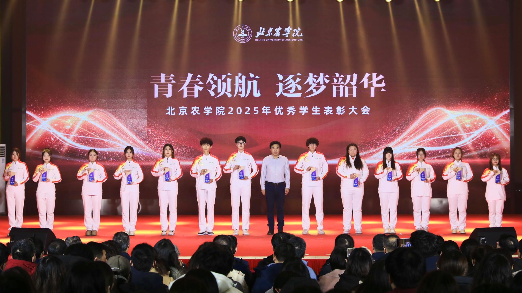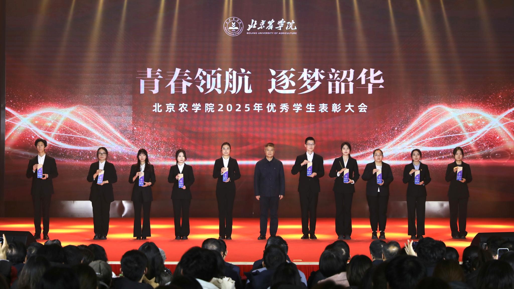 校領(lǐng)導(dǎo)分別為優(yōu)秀畢業(yè)生代表、北京高校紅色“1+1”示范活動(dòng)獲獎(jiǎng)黨支部、北京農(nóng)學(xué)院國旗班、“四有”優(yōu)秀士兵代表、紀(jì)念中國人民抗日戰(zhàn)爭暨世界反法西斯戰(zhàn)爭勝利80周年大會(huì)廣場合唱團(tuán)及民兵方隊(duì)代表頒獎(jiǎng),表彰堅(jiān)守信仰、愛國奉獻(xiàn)的青春力量;為社會(huì)實(shí)踐優(yōu)秀團(tuán)隊(duì)與先進(jìn)個(gè)人、心理健康類、體育類、文藝類獲獎(jiǎng)學(xué)生代表頒獎(jiǎng),表彰知行合一、全面發(fā)展的奮進(jìn)榜樣;為市級(jí)先進(jìn)班集體、市級(jí)優(yōu)秀學(xué)生干部、市級(jí)三好學(xué)生、國家獎(jiǎng)學(xué)金獲得者代表、“挑戰(zhàn)杯”及各類科創(chuàng)競賽獲獎(jiǎng)團(tuán)隊(duì)代表頒獎(jiǎng),表彰勤學(xué)善思、勇于創(chuàng)新的先進(jìn)典型。