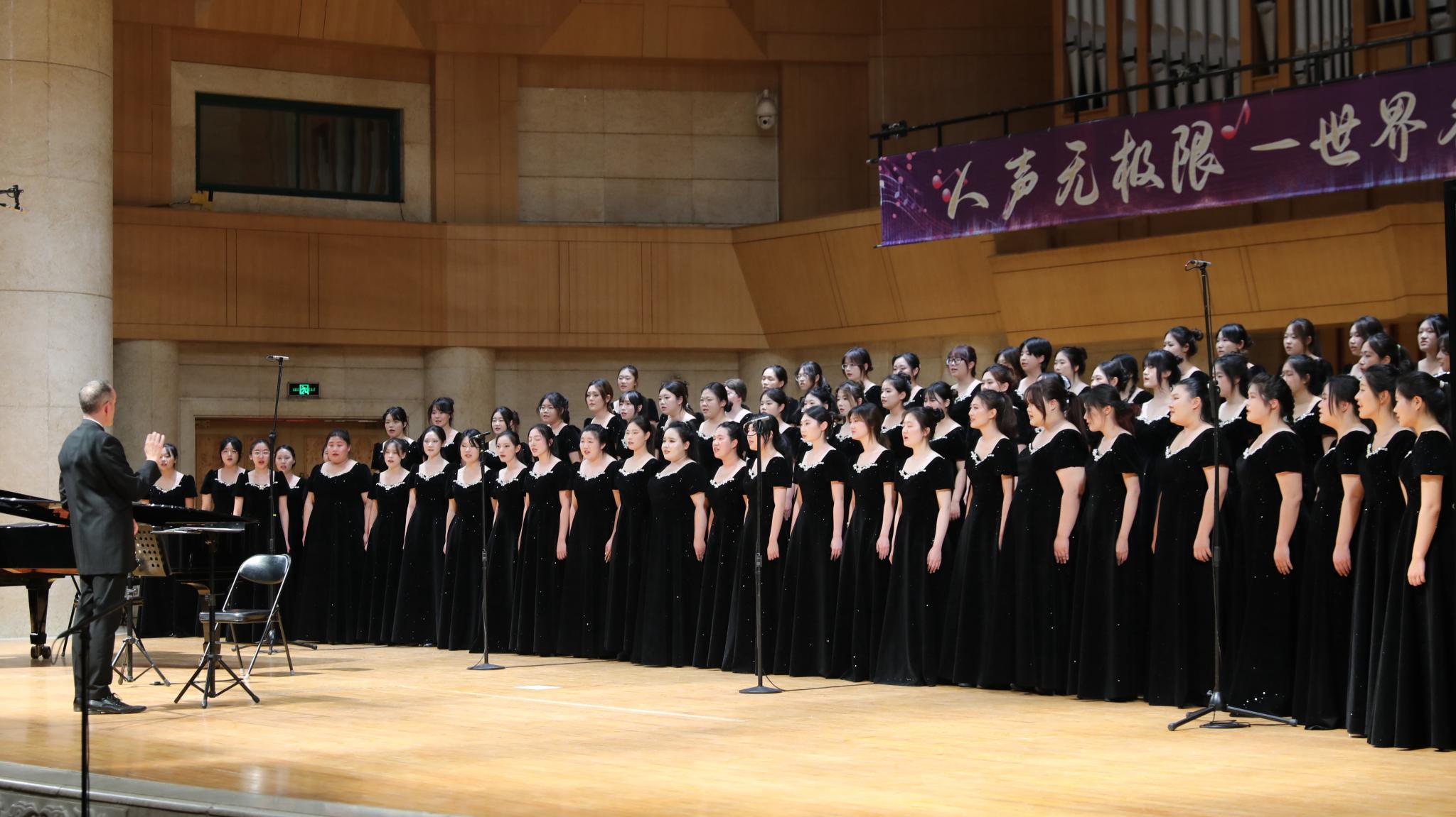 音樂會上,女聲合唱團先后演繹《alily》《綠色的希望》《百合花》等曲目。Reed教授生動細致講解了音樂創作背景。團員們以飽滿情感展現中外名曲意境,體現扎實專業素養和藝術表現力,贏得現場陣陣掌聲。