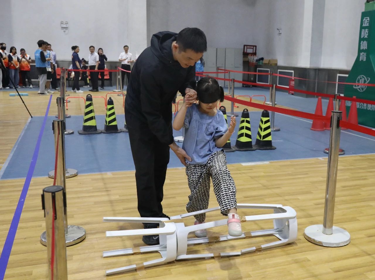 “如果我們喪失了視覺,我們該如何生活和參加體育運動呢?今天我們通過‘黑暗運動會’,讓大家體驗下視障人士使用導盲犬的感受?!眳⒓印昂诎颠\動會”的志愿者要將雙眼蒙住,模擬在失去視覺環境下如何完成運動任務。