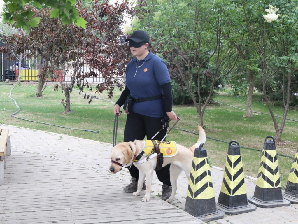 遇到前方有障礙物,導盲犬自覺放慢了速度,用身體的搖擺來提醒主人往哪個方向躲避,聽到“過通道”“找旗桿”的指令,它們能帶領主人順利找到位置……5月19日是第34個全國助殘日,北京農學院、北京市殘聯在北京市導盲犬培訓基地開展導盲犬體驗活動,展示導盲犬工作場景、科普導盲犬相關知識,讓更多人體驗視障人士使用導盲犬的實際感受,從而在生活中為導盲犬提供工作便利,更好地助力視障人士無障礙出行。