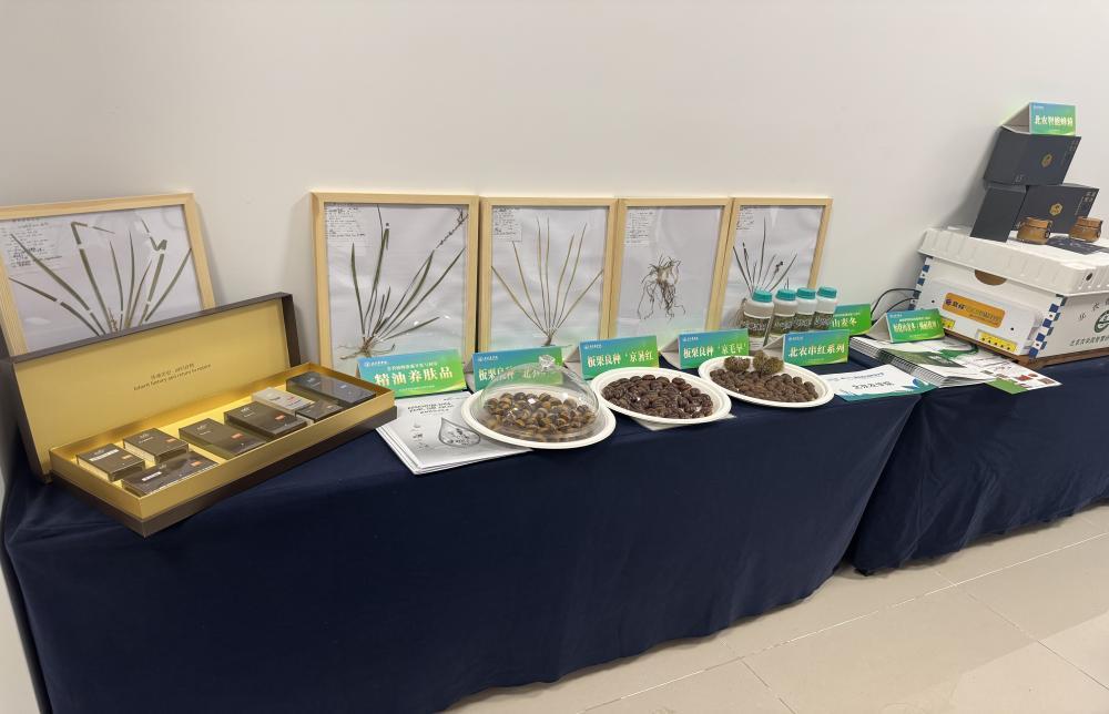 在延慶分會場,學校重點展示了林果等特色作物新品種,以“優質、早熟、抗逆”為核心優勢,精準對接市場需求。其中板栗良種‘京暑紅’,成熟期早、果肉金黃、殼薄、質地甜糯,可供應中秋及國慶炒貨市場;國內首個冰栗專用品種‘北農冰栗’,商品性好,果面紅褐、光澤明亮且茸毛少,品質上抗性淀粉含量較高、含糖量高,口感粉糯香甜,帶有“冰激凌”口感,深受栗農和企業青睞;豐富的山麥冬品種在抗旱性、耐寒性、耐蔭性、抗病蟲性上表現突出,滿足了低成本園林養護的要求,其多彩的葉色為園林綠化提供了豐富的選擇,引起廣大種植戶和相關企業的高度關注。