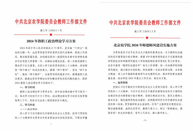 堅(jiān)持不懈用習(xí)近平新時(shí)代中國(guó)特色社會(huì)主義思想凝心鑄魂,用黨的創(chuàng)新理論武裝教師頭腦、指導(dǎo)實(shí)踐、推動(dòng)工作,從思想上正本清源、固本培元。制定《北京農(nóng)學(xué)院2024年教職工政治理論學(xué)習(xí)方案》,構(gòu)建經(jīng)常性教育與集中性教育相結(jié)合的理論學(xué)習(xí)教育工作機(jī)制。堅(jiān)持教師每月集中學(xué)習(xí)和每周固定學(xué)習(xí)日制度,推進(jìn)政治理論學(xué)習(xí)規(guī)范化、制度化。圍繞政治理論、黨規(guī)黨紀(jì)、師德師風(fēng)素養(yǎng)、政策業(yè)務(wù)知識(shí)四個(gè)模塊深入開展教職工思想政治教育活動(dòng)。拓展宣傳教育平臺(tái),開通“北農(nóng)教師”微信公眾號(hào),結(jié)合人事人才服務(wù)平臺(tái),發(fā)布政治理論學(xué)習(xí)材料30余期。