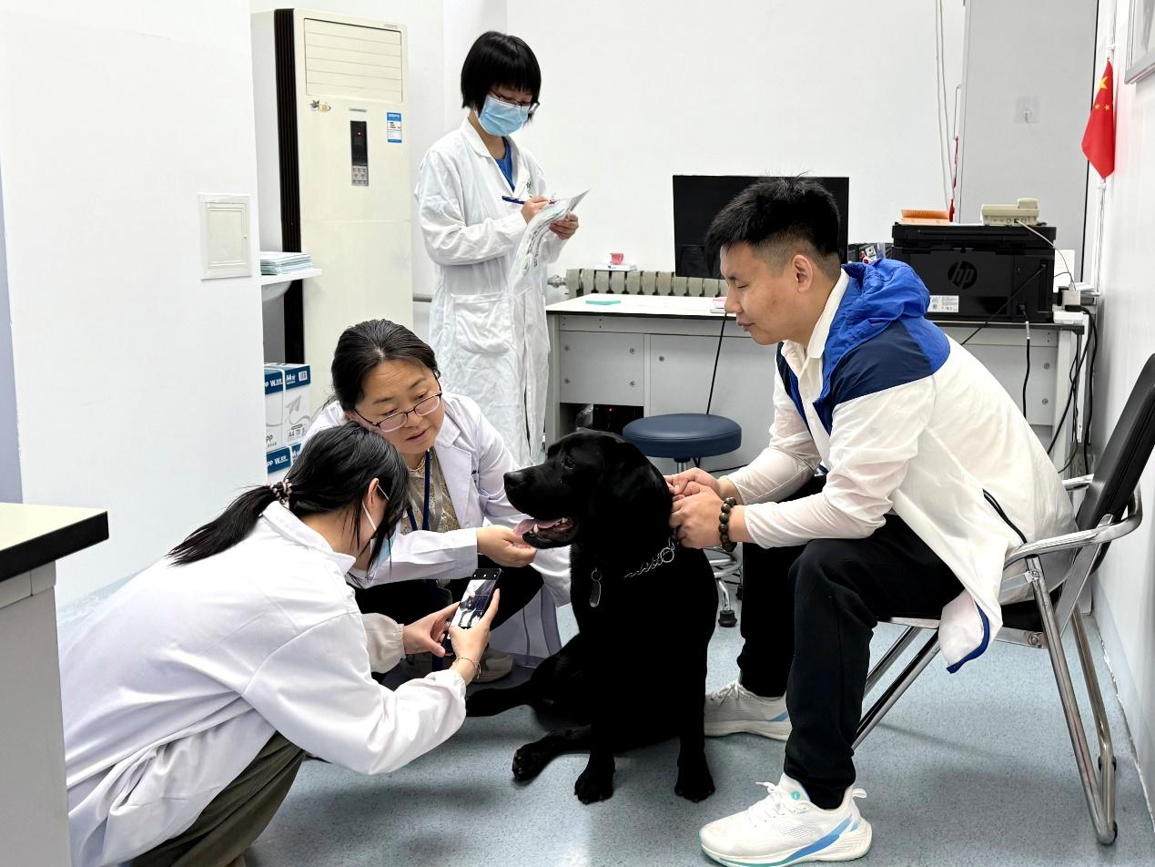 活動當天,北京農學院動物醫院導盲犬保健中心為13只北京市在役導盲犬提供免費體檢和義診服務并建立健康檔案。體檢項目包括基本常規檢查、心臟檢查、血液檢查、影像學檢查、胃腸道篩查、健康評估等項目,以及洗耳、剪指甲、肛門腺處理等日常護理,還應導盲犬使用者需求量身打造了專屬體檢項目。導盲犬“Dumbo”的使用者肖佳感慨道:“專業的醫療支持讓我們更安心,這樣的診療服務非常貼心。感謝北京農學院為導盲犬日常護理提供的專業支持。”