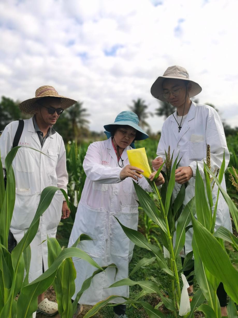 每年10月,秋意漸濃,青貯玉米團(tuán)隊(duì)就奔赴海南的南繁基地。三亞和樂(lè)東的濕熱空氣、肆虐的蚊蟲、陌生的環(huán)境,給初來(lái)乍到的師生帶來(lái)嚴(yán)峻考驗(yàn)。他們并未退縮,反而熱情高漲。白天安排授粉工作,晚上組織團(tuán)隊(duì)分享科研思想。授粉高峰期,頂著烈日從早上忙碌到傍晚。老師們身先士卒,不怕曬,不怕累;學(xué)生們深受感染,春風(fēng)化雨,潤(rùn)物無(wú)聲。