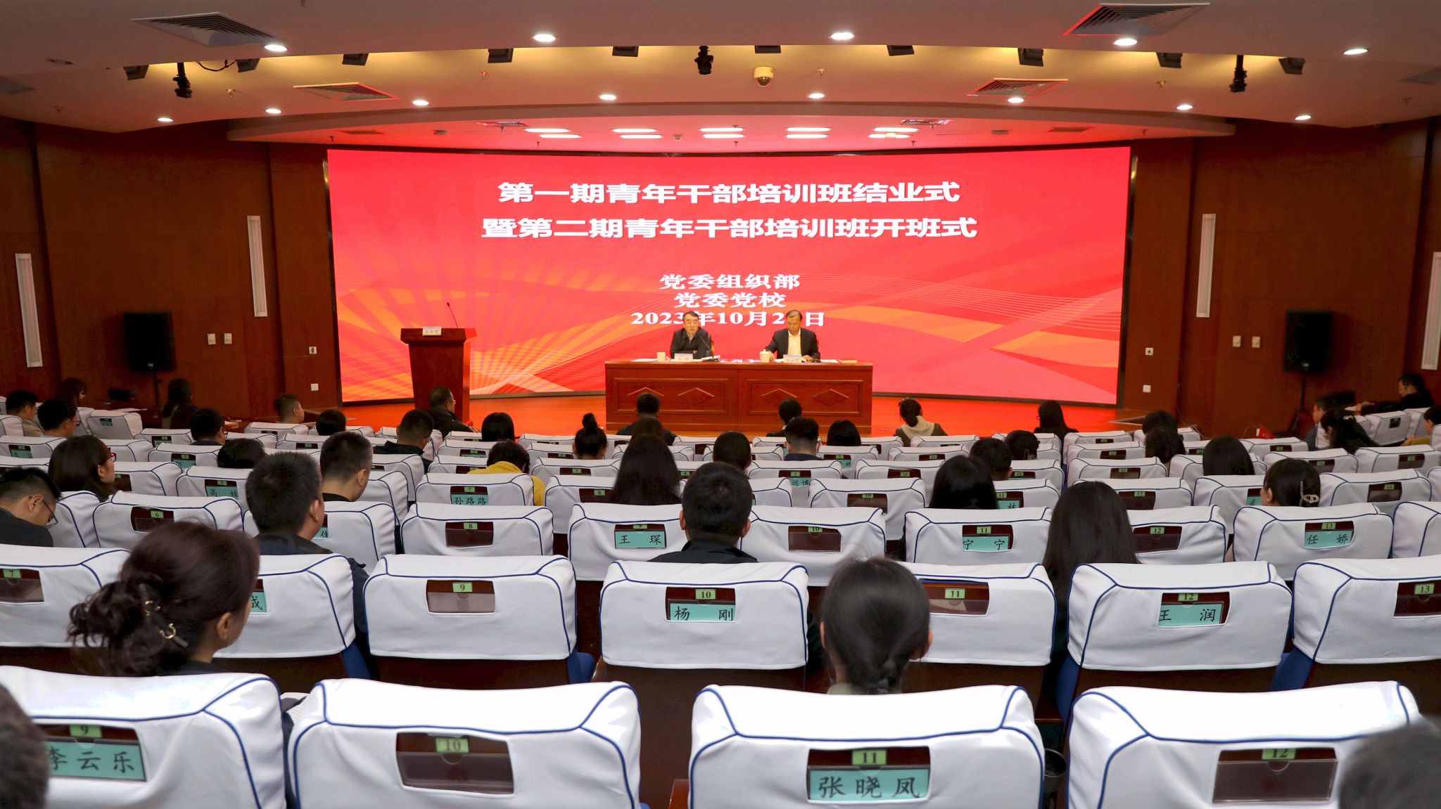 為深入貫徹落實習近平總書記關于干部教育培訓和青年教師成長成才的重要論述,貫徹落實《干部教育培訓工作條例》和《全國干部教育培訓規劃(2023-2027年)》,教育引導青年干部提升黨性修養、錘煉過硬本領,切實把學習成效轉化為推動學校事業高質量發展的強大動能,10月26日下午,學校在圖書館報告廳舉行第一期青年干部培訓班結業式暨第二期青年干部培訓班開班式,黨委書記趙鋒出席會議并為學員講“開班第一課”。會議由黨委副書記仲叢生主持。