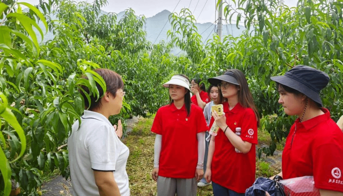 暑期植物科學技術學院曹慶芹教授、張卿副教授、張德鳳副教授多次帶領實踐團成員深入平谷區大華山鎮掛甲峪村和蘇子峪村,與鎮、村領導和技術人員探討平谷大桃免套袋管理和蘇子峪蜜棗種植遇到的技術難題,并結合實際提出解決方案。
