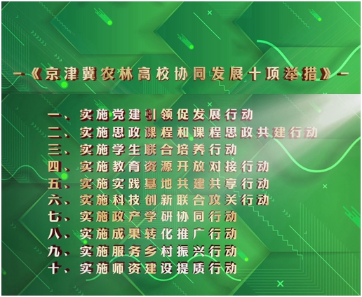 為深入貫徹習近平總書記在深入推進京津冀協同發展座談會上的重要講話精神,全面落實《京津冀教育協同發展行動計劃(2023年—2025年)》,面向新農業、新鄉村、新農民、新生態,進一步提升京津冀涉農高校協同發展水平,制定以下舉措。